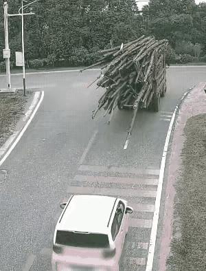 前面这辆车装的也是够多的了,而且长短不一,支棱八翘的,尤其要命的是,突然来了一个刹车,而后面的这个车离的又非常近,直接被木头戳穿了车窗,不知道有没有人受伤,看着真是够惊险的了,看来在开小车的时候,一定要远离大车,这话是非常有道理的!