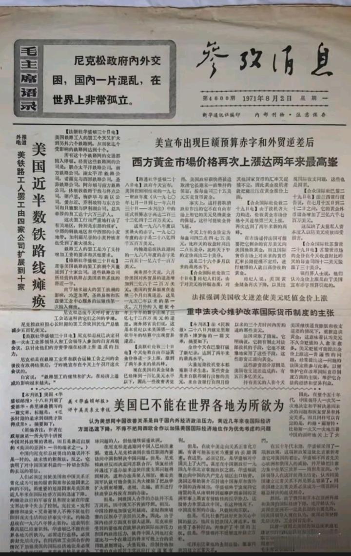 上世纪70年代的《参考消息》,现在读来很有意思。 美国是报纸头版的主角,唱衰美帝是报纸的主题。50多年过去了,我们的孙子都快上高中了,美国还是那个老样子。 所以说《参考消息》只能作“参考”,但不管怎么说,它的日期是真实的!
