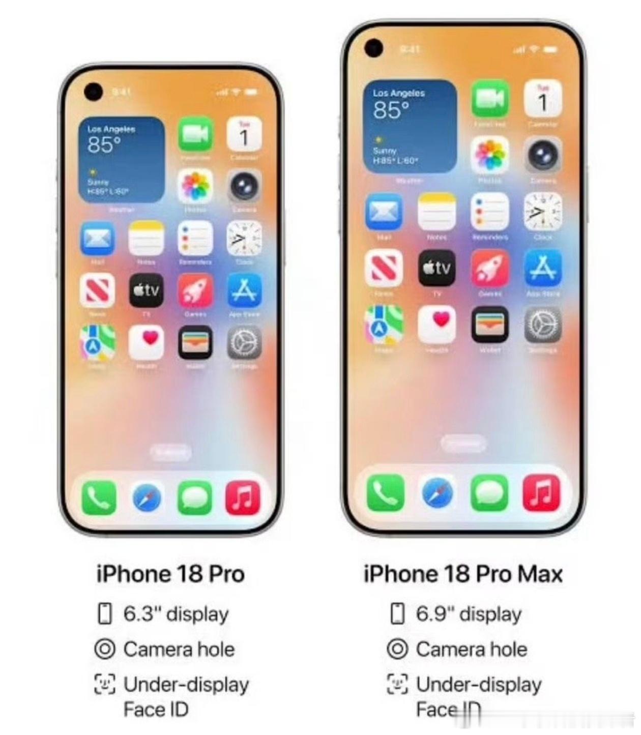 结合目前的信息源,iPhone18 Pro系列会采用屏下Face ID,但依然保留了前置打孔相机,还是无法做到真正的全面屏。不过,这个打孔不在中间了,而是挪到了屏幕左上角,有点当年安卓那个味儿了。如果就这个样子,大家觉得颜值好看吗?iPhone18Pro最新前瞻