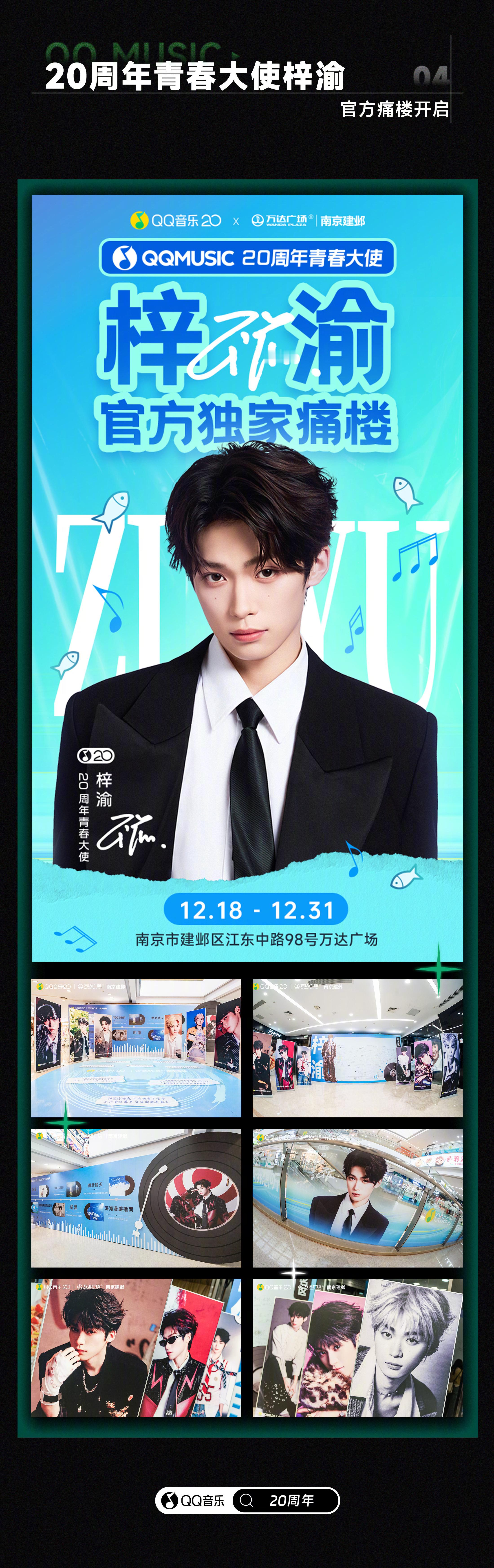 QQ音乐20周年青春大使梓渝官方痛楼来了,地点在南京建邺区万达广场,从12月18日到12月31日,好美的痛楼呀,大家去打卡了吗?