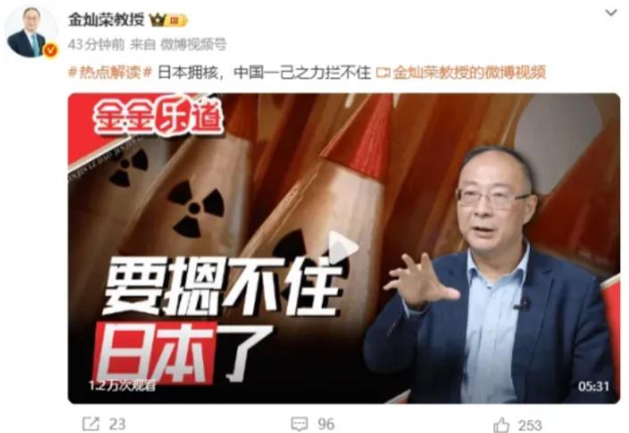 金灿荣教授宣布了: 日本拥核,中国一己之力拦不住!要知道,这话不是什么“营销号”说的大话,而是由国际关系专家金教授给出的分析! 说白了,这事的核心就是日本拥核已是大概率风险,我们别再抱有幻想,必须拿出硬对策才能掌握主动权。 最近金灿荣教授这番分析一出来,瞬间就炸了锅,不是因为危言耸听,而是这结论戳中了当前东亚安全格局的痛点,毕竟这话出自深耕国际关系多年的专家之口,可比那些博眼球的营销号靠谱多了。 很多人跟我有一样的感觉,日本说不定早就偷偷攥着核武相关的底牌了,不然哪来的底气接二连三挑衅中国? 看看最近的动静就知道,首相高市早苗把“台湾有事”和日本的“存亡危机”绑在一起,还放任近30名国会议员窜访台湾,创下所谓的“史上最大规模”。 在钓鱼岛问题上更是明火执仗,冲绳石垣市议会都通过决议要强行登岛设标柱,这一系列操作根本不像是没底气的样子。 更关键的是,国际原子能机构的数据摆在那,日本现在存着47.8吨分离钚,光武器级的就有10吨,理论上能造上千枚核弹头,再加上“富岳”超算能做核爆炸模拟,H-3火箭改改就能当洲际导弹用,这些硬实力摆在那,说它没想法谁信? 要是真让日本顺顺利利拥核,那整个地区的安全平衡就彻底乱套了。 按这个逻辑,东南亚那些周边国家肯定坐不住,既然日本能有,他们为了自保也得争相搞核武装,到时候东亚、东南亚就成了核扩散的重灾区,随便一点小摩擦都可能引爆大危机。 更不能忽视美国的态度,要知道美国对盟友拥核向来是双重标准,当年就默许了以色列搞核武,现在要是为了制衡中国,对日本拥核睁一只眼闭一只眼,那我们也没必要客气。 古巴和委内瑞拉离美国本土那么近,既然美国能放任盟友打破规则,那这两个国家要是核武装起来,美国是不是也得尝尝家门口有核威胁的滋味? 我感觉本质上这就是美国在背后“放狗咬人”,把日本当棋子来牵制中国,面对这种情况,我们可不能等狗咬到身上再还手,必须在它呲牙咧嘴的时候就彻底按住,甚至直接打死这只“狗”。 老话讲打狗看主人,这回我们得换个思路,要做到“打狗慑主人”。 你想啊,要是能牢牢摁住日本的扩张野心,让它知道挑衅中国的代价有多惨重,不仅能断了它拥核的念想,更能让背后的美国明白,我们维护核心利益的决心不容试探,想靠代理人搅乱局势根本行不通。 毕竟美国向来是趋利避害,真看到日本这步棋彻底输了,自然会收敛自己的小动作。 现在金教授说中国一己之力拦不住日本拥核,其实也是在提醒我们,这不是单一国家的博弈,而是整个国际规则和地区平衡的较量。 我们需要的是联动周边、精准施策,既盯着日本的核材料动向,也制衡它的地缘挑衅,更要让美国清楚破坏核不扩散体系的后果。 本文仅为个人看法,不代表任何官方立场,对于日本拥核的风险以及我们该采取的应对措施,你有什么不一样的观点?欢迎在评论区一起讨论。