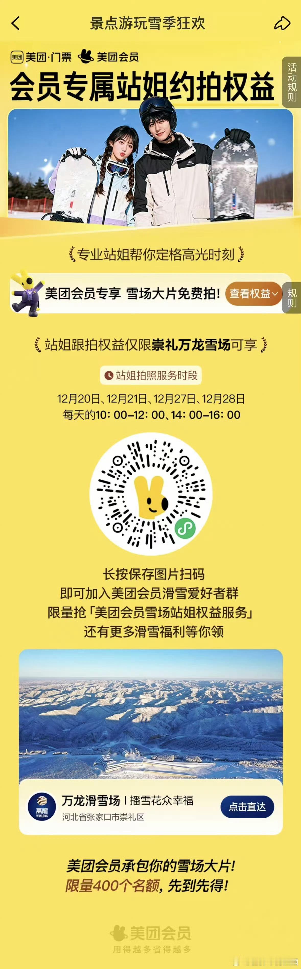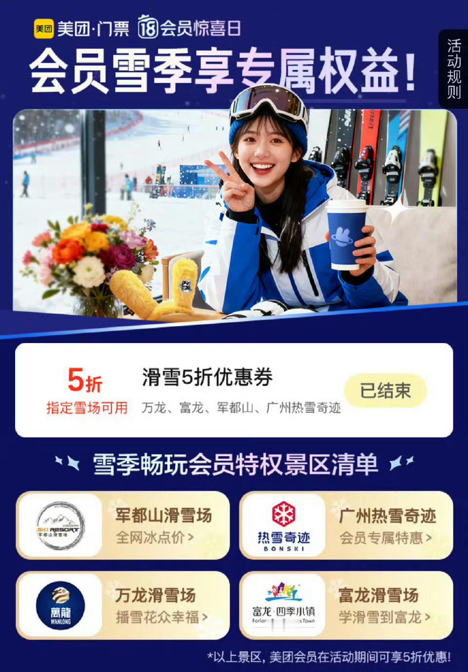 美团会员滑雪福利封神!住滑套餐5折起,预约站姐拍滑雪大片,黑金黑钻解锁免费休息室,27、28号还能约,雪场出片稳赢朋友圈~