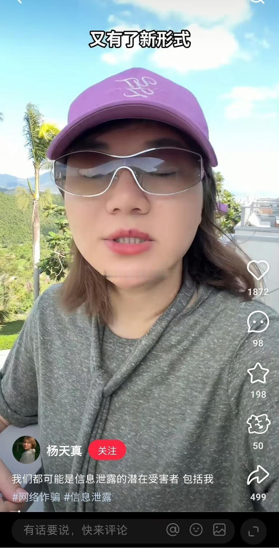 不敢想,杨天真被骗,连公众人物隐私做的如此严谨的情况下都能被骗,普通人防不胜防,又如何躲过骗局? 骗子通过社交媒体私信联系杨天真,准确报出其真实姓名、护照号及夏威夷行程,谎称她“拖欠机票款”,威胁“不及时付款将报警”,并伪造客服联系方式。 杨天真的社交媒体大号未使用本名,但骗子仍能关联其真实身份,精准扒出她的出行轨迹,这背后藏着的隐私泄露黑洞,才是最让人不寒而栗的。 要知道,公众人物有着更完善的隐私保护团队,尚且逃不过信息贩子的精准“狩猎”,我们这些普通人的姓名、手机号、出行记录、消费偏好,早已在无形中成了明码标价的商品,在灰色产业链里被倒卖无数次。 骗子的套路其实算不上多新鲜,无非是“精准报信息+制造恐慌+伪造权威身份”的三板斧,可偏偏就是这三板斧,总能戳中人们的软肋——当对方能一字不差报出你的隐私时,任谁都会先慌神三分,再被“报警追责”的威胁牵着鼻子走,一步步掉进转账的陷阱。 我们删不掉网上的痕迹,拦不住信息的倒卖,只能一遍遍警惕“天上掉馅饼”,一次次核对陌生来电,可这样的防不胜防,终究是一场疲惫又被动的自我保护。