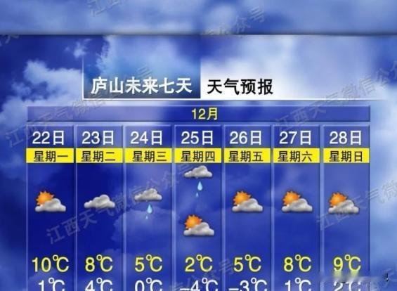 江西初雪倒计时!这几处绝美雪景将刷爆朋友圈,你准备好了吗? 这股冷空气一来,天说变就变,前两天还裹着单衣的人,转眼就得翻出羽绒服。冬至刚过,“数九寒天”算是正式开场了,全国中东部大片地区要迎来一轮雨雪交加的“冰火考验”。从12月23日开始到25日,冷空气横扫我国,长江以北气温普遍下滑4到6℃,部分地区降幅直接冲上8到10℃,内蒙古东部和东北局地甚至会跌超10℃,风也不小,4到5级打底,阵风能窜到6到8级。 江西这次也躲不过。冷空气南下,全省气温平均要降个4到6℃,而且是自北向南铺开,小雨先上场,接着一些地方就要转战雨夹雪。庐山的天气最“抗冻”,12月25日最低温直接干到-4℃,寒意扎人。这还只是前菜,真正重头戏在下周日——1月4日。中央气象台最新的监测数据出来后,不少人盯上了九江、宜春、萍乡和上饶,这些地方,可能要迎来今冬第一场像模像样的降雪。对吧?等了这么久,终于要看到雪花飘落赣鄱大地了。 要说江西的雪景,从来都不缺话题。庐山一场雪下来,如琴湖边的树梢挂满霜花,湖面倒映着灰白的天光,整个世界安静得像按了暂停键。李劼拍过好几次雪中庐山,他总说,只有下过雪的庐山,才算完整。冰雪覆盖下的楼宇和栈道,仿佛不是人间景,倒像是从老画里抠出来的。 萍乡的武功山更不用提,谢凌阳有回凌晨四点爬上去,正好赶上雪后云海翻腾,阳光刺破云层那一刻,整片山脉像浮在空中。他后来发朋友圈说:“那一刻,觉得自己像神。”现在再看那些照片,还是能感受到那种震撼。雪和云海同时出现,概率不高,但一旦撞上,谁看了都得愣住。 三清山的雪有种清冷的仙气,尤其是春雪拂过山脊时,石阶、古松、断崖,全都裹上一层薄白,像是谁轻轻撒了一把盐。婺源大鄣山卧龙谷也藏了不少惊喜,溪水没冻住,还在石缝间潺潺流,可岸边的竹叶已经压满积雪,绿白交错,特别出片。 宜春那边,仰山的栖隐禅寺一落雪,整个寺庙就像沉进了一场旧梦里。明月山的明月广场也美,台阶上扫出一条小路,游客踩着往上走,两旁雪堆得齐膝高,抬头就是雾凇挂枝,咔嚓一声,随便一拍就是壁纸。 初雪将至,很多人已经开始盘算去哪儿蹲第一场雪。是守在庐山看日出破云?还是杀去武功山碰运气赌云海?亦或是在三清山的小道上,一个人静静走一圈?说实话,这种时候,真不指望天气预报多准,只想赶在雪花落地前,站在那个最合适的地方。你猜,今年的第一片雪,会落在哪儿?