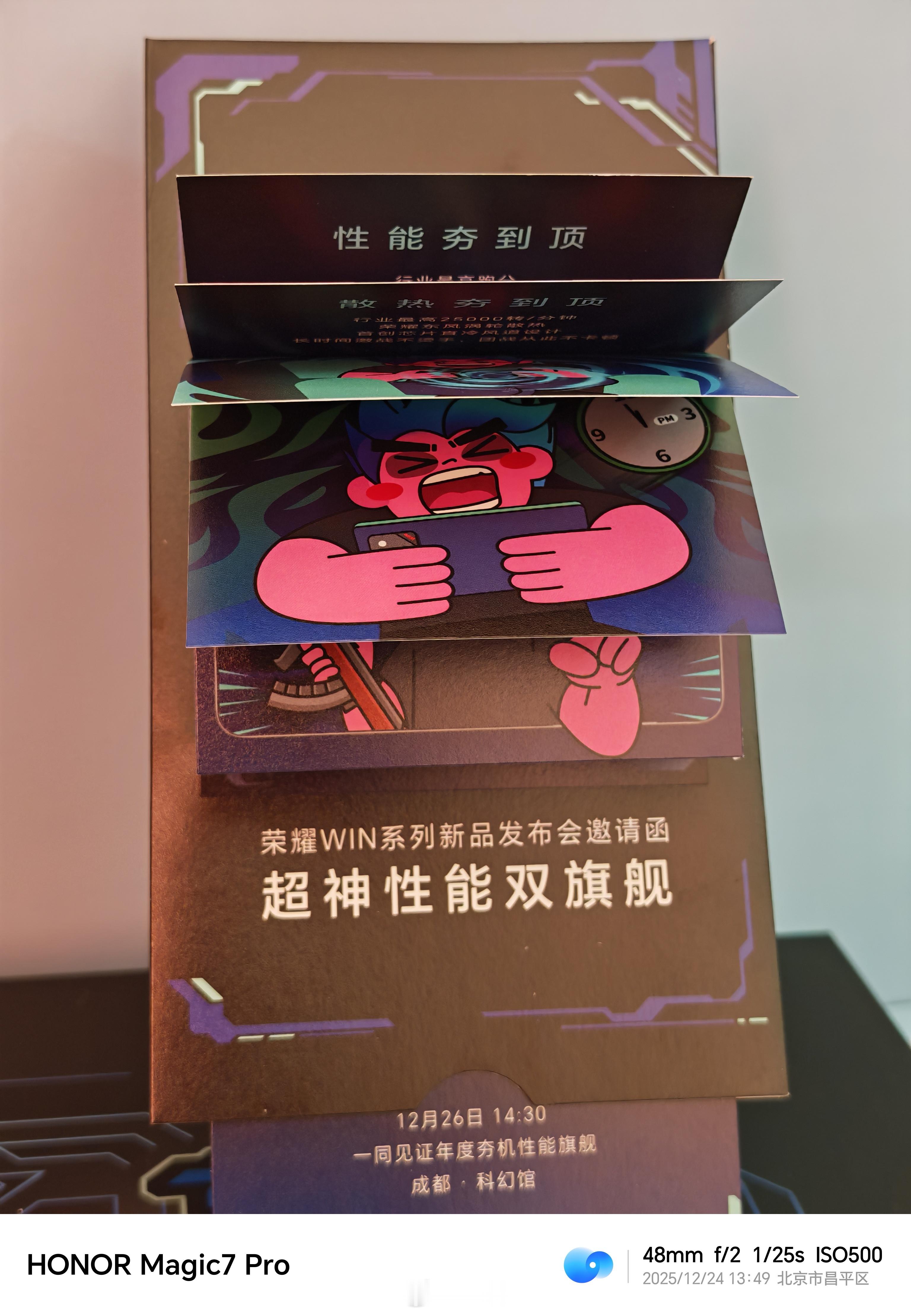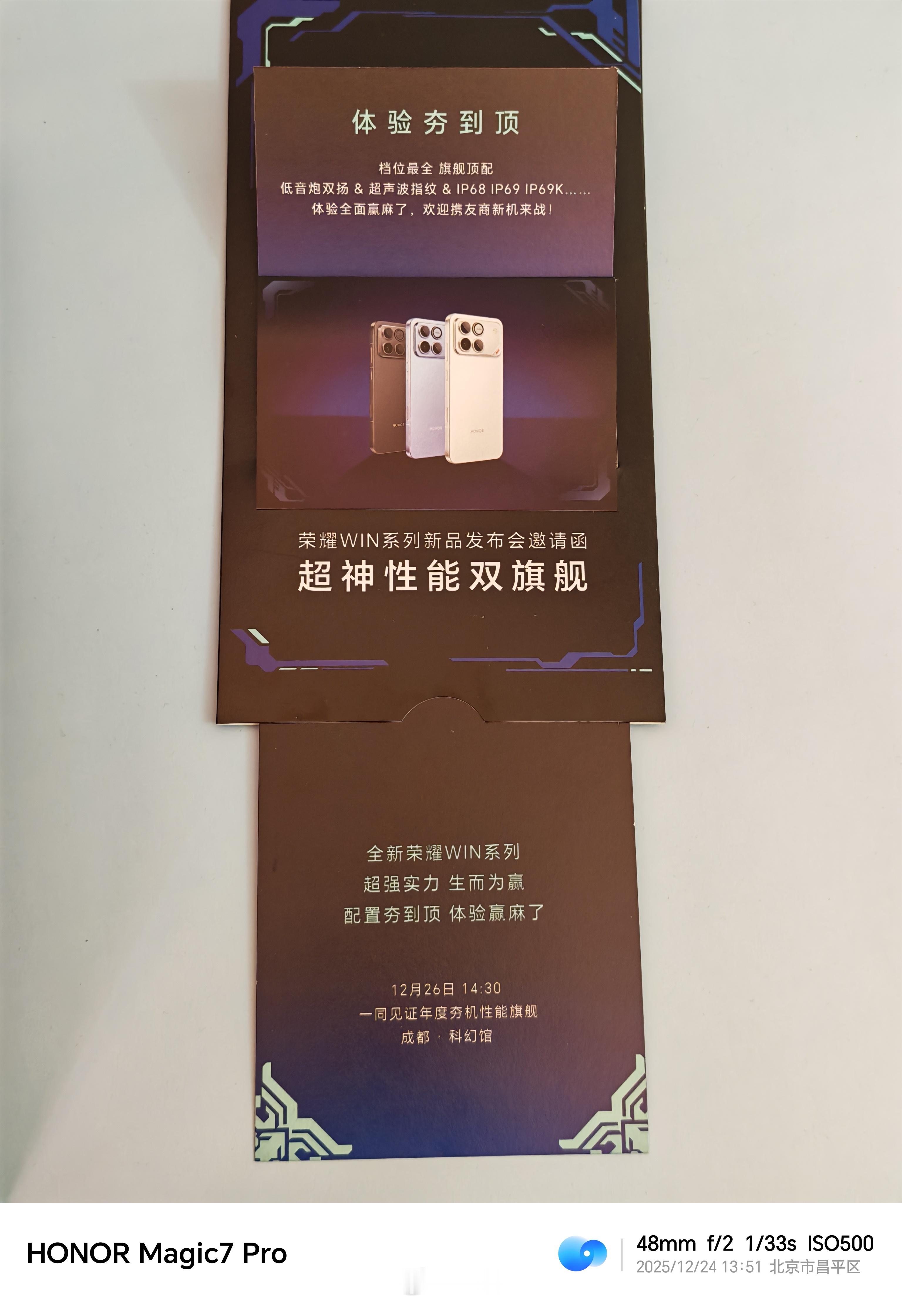 收到荣耀WIN系列“赢证”邀请函了!瀑布式呈现,抽拉式阅读还挺有趣确实骁龙8E5旗舰芯配10000mAh巨无霸电池,东风涡轮散热+185Hz超高刷,实力真的“赢麻了”!12月26日14:30一同见证年度夯机性能旗舰