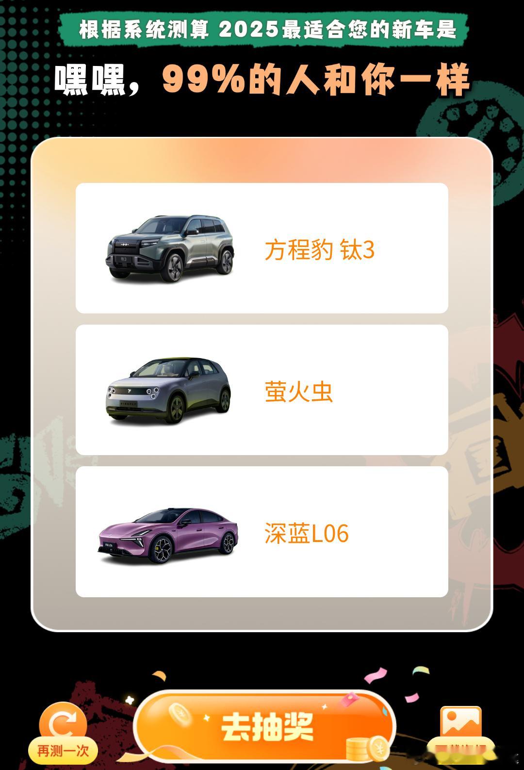 2025哪款新车适合我 测试出来最适合我的车是方程豹钛7——它不只是一台车,更是一位兼顾理性与感性的生活伙伴。1. 空间:不是“够用”,而是“从容”钛7以近5米的车身与2920mm越级轴距,重新定义中大型SUV的空间哲学。后排“得房率”超70%,儿童可在过道直立穿行,老人上下车无需弓腰;座椅放倒后,1880L的纯平扩展空间堪比小型厢货——露营装备、折叠自行车、婴儿车、甚至整套户外炊具都能轻松收纳。970L常规后备箱+32.5L“小书包”式外挂储物箱,再加全车47处巧思储物格(含门板冰镇饮料槽、中控台隐藏式无线充托盘、后排中央扶手冷暖杯架等),让每一程出行都井然有序。2. 动力:狂野与精算的完美共生搭载全新一代1.5T插混系统,两驱版CLTC纯电续航达200km,四驱版综合续航突破1300km,馈电油耗低至5.95L/100km(NEDC工况实测约4.9L),真正实现“城市用电零油耗、长途用油无焦虑”。四驱顶配版零百加速仅4.5秒,媲美性能轿跑;10种智能驱动模式(含雪地、泥地、沙地、越野脱困等)配合云辇-C智能阻尼可调悬架,让通勤路上稳如高铁,非铺装路面游刃有余——科技不是炫技,而是让复杂路况变得简单。3. 驾乘:把客厅搬进座舱舒芙蕾真皮座椅采用三重发泡工艺,触感绵密、支撑精准;主驾12向电动调节+加热/通风/按摩,副驾4向电动调节,后排靠背支持多档电动倾角调节,连脚托都预留了伸展空间。20扬声器丹拿沉浸声场覆盖全舱,配合双层静音玻璃与主动降噪技术,高速风噪低于62分贝;前排中控台内嵌智能冷暖冰箱,-6℃~55℃宽域温控,冷饮、热食、药品皆可随心存取——舒适,是写进每一寸细节里的承诺。4. 智能:不止于“听懂”,更要“预判”DiLink 5.0系统搭载15.6英寸OLED中控屏+26英寸AR-HUD全景投影,信息投射距离达10米,导航箭头“浮”在真实路面上。语音交互支持全场景连续指令与方言识别,一句“我饿了”,即联动高德地图+支付宝完成餐厅筛选、点单、刷脸支付闭环;高阶DiPilot 300智驾系统集成NOA高速领航、自动泊车、紧急避让等32项功能,并首次开放车机直控无人机——出发前轻点屏幕,无人机自动升空拍摄全家福,记录旅途第一帧风景。5. 安全:看不见的守护,才是最硬的底气“七横九纵”超高强度笼式车身,热成型钢占比达32%,关键部位采用2000MPa超强钢;全系标配9气囊系统,含同级罕见的中央气囊,有效防止乘员侧碰位移;更有胎压智能监测、540°透明底盘、后方横向来车预警(RCTA)、紧急车道保持(ELKA)等36项主被动安全配置。每一处结构设计、每一次算法响应,都在为“家人平安抵达”默默加码。6. 外观:方舟启航,亦可潮改新生延续“星际方舟”设计语言,硬朗线条与曲面光影交织,方正轮廓中暗藏空气动力学优化——风阻系数低至0.32Cd。7种原厂车色中,“山水绿”如初春山岚,“霜雾灰”似晨光薄霭;更提供6套官方认证渐变潮改方案(如星穹银→极夜黑、熔岩橙→曜石黑),搭配可拆卸式外挂储物箱,既是实用装备,更是个性宣言——你的车,本就不该千篇一律。