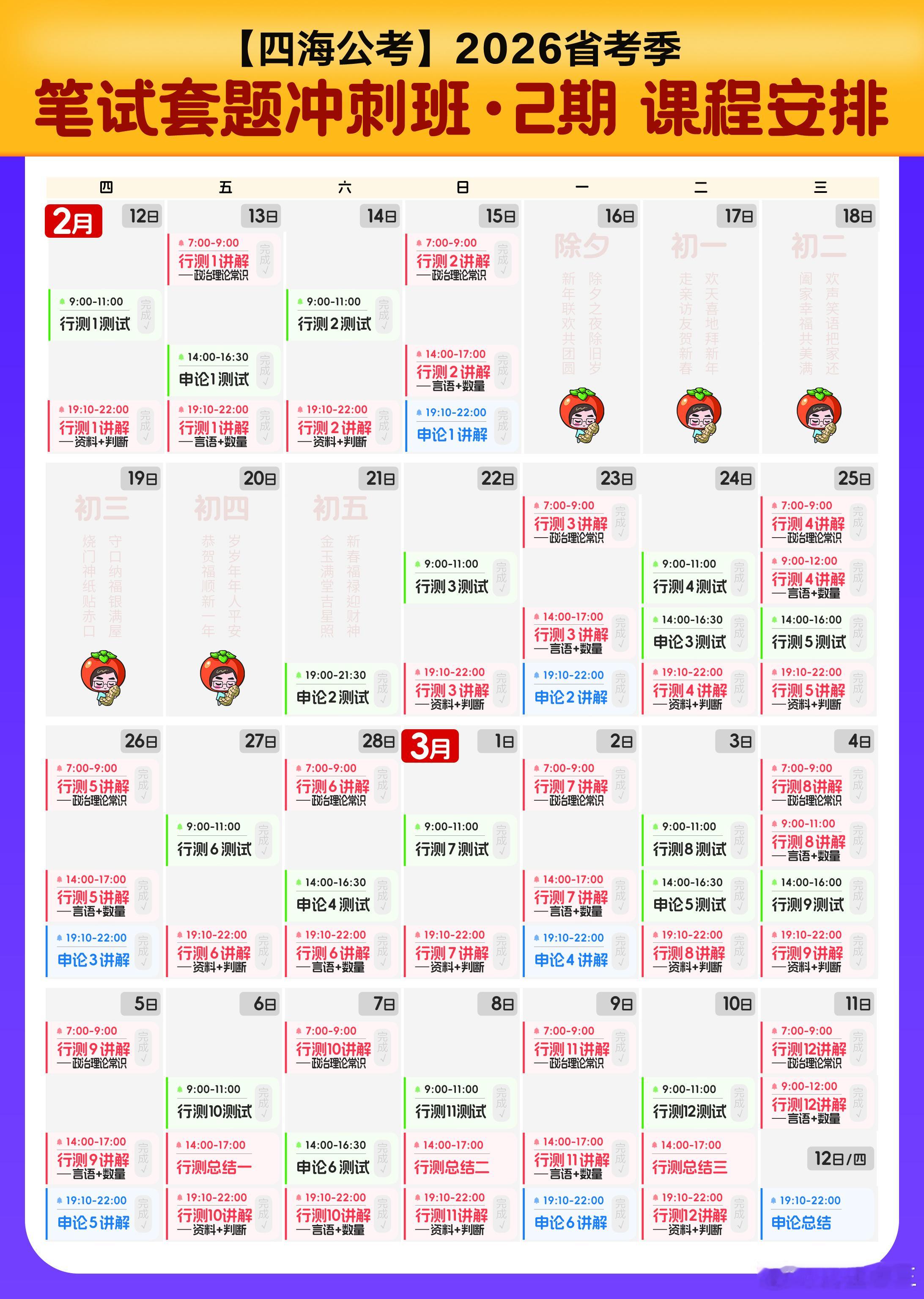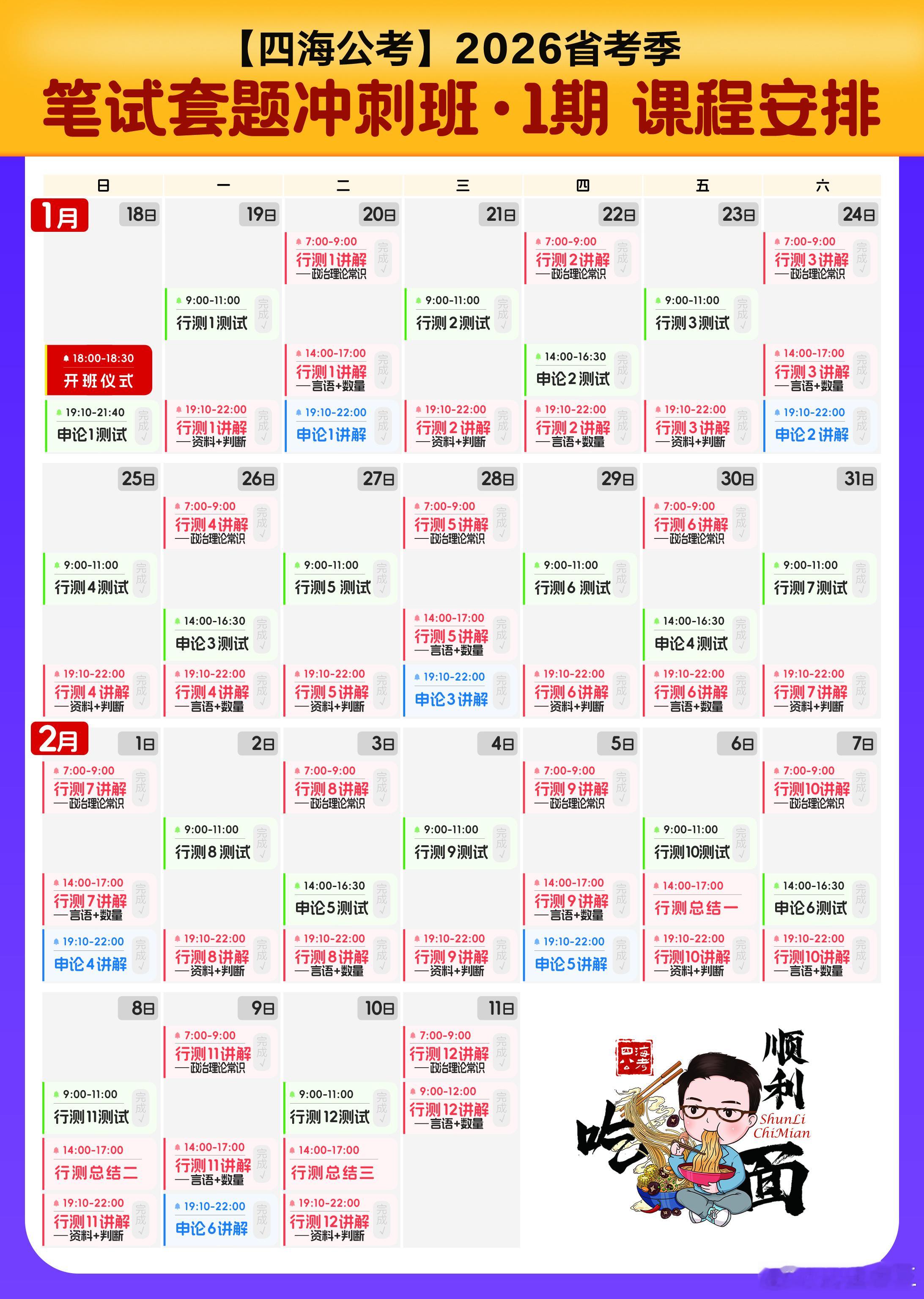 四海公考2026省考两期套题课程表1月18号开始,我们就进入省考套题冲刺阶段啦!