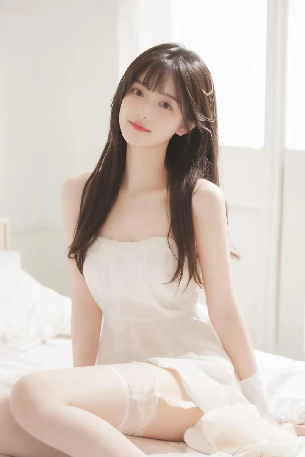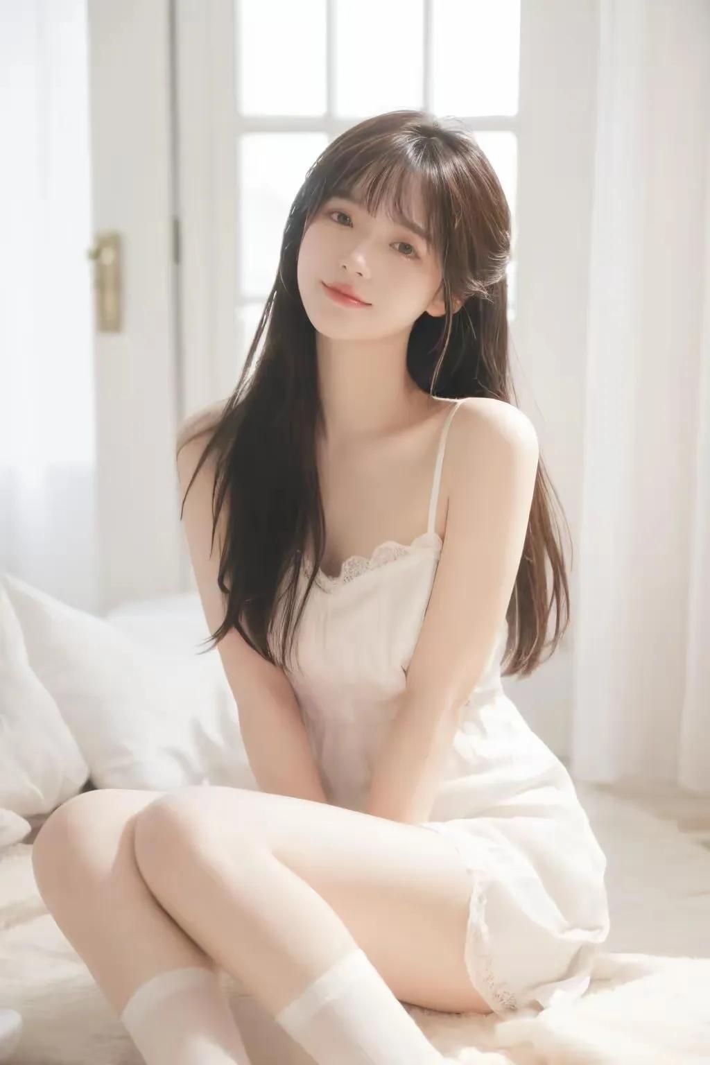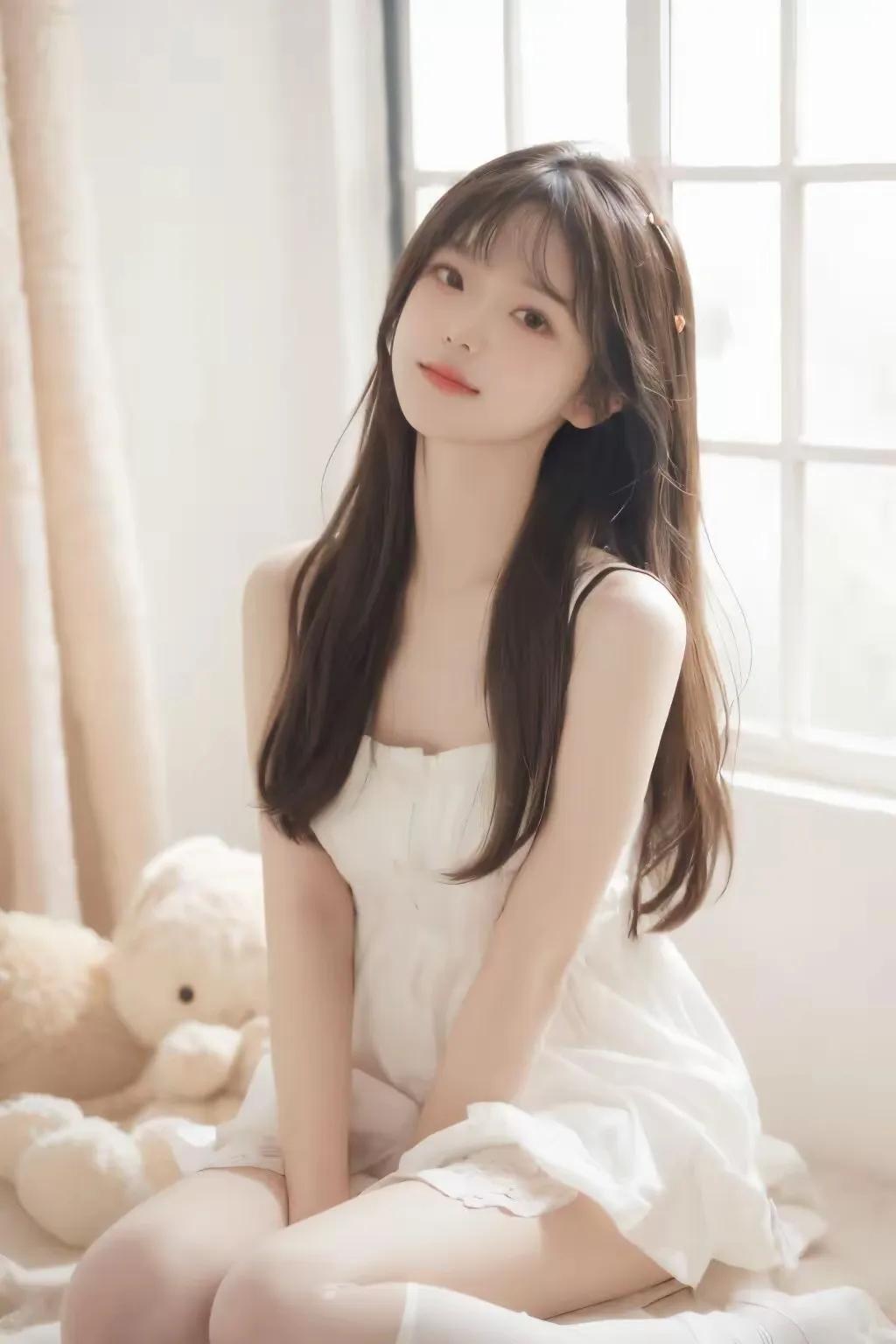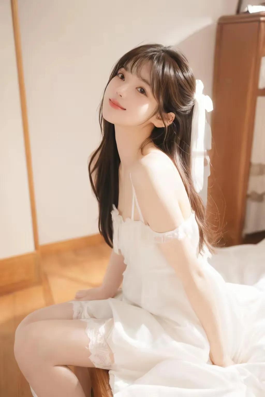 少女摄影|NO.0190期 清纯美少女室内随拍 小白裙配小白袜,再加温婉淑女长发