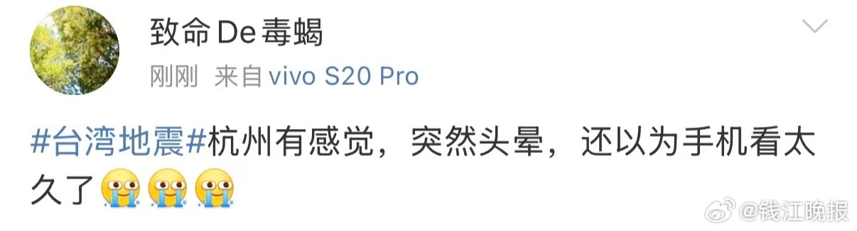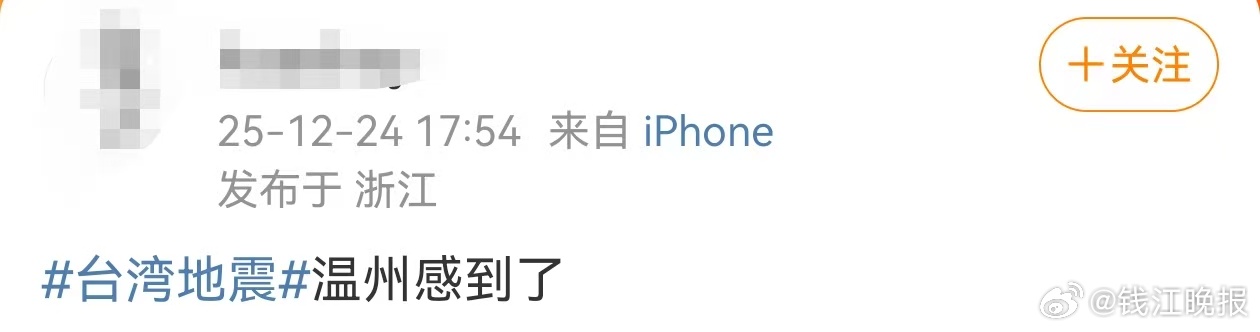 #台湾地震# 【 #台湾5.8级地震浙江多地有感# 】 中国地震台网正式测定:12月24日17时47分在台湾台东县(北纬22.86度,东经121.12度)发生5.8级地震,震源深度10千米。微博上,浙江多地网友表示有震感。你那边能感觉到吗?