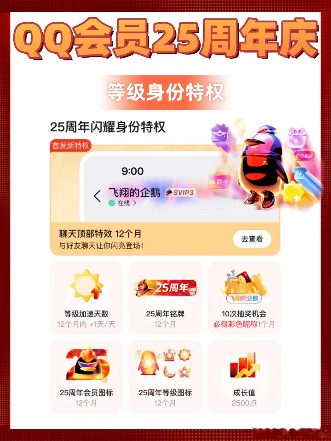 原来大家的童年回忆都一样说到童年回忆杀,我去翻了账号等级才惊觉,居然已经陪着扣扣走过25年了!小时候总盼着等级往上涨,还会跟同学比谁的等级更高,现在不用天天挂着也能领成长值,等级功能也更完善了,去扣扣上搜会员周年庆参加活动还解锁到额外玩法,老用户真的被狠狠戳中了~QQQQ会员QQ会员周年庆