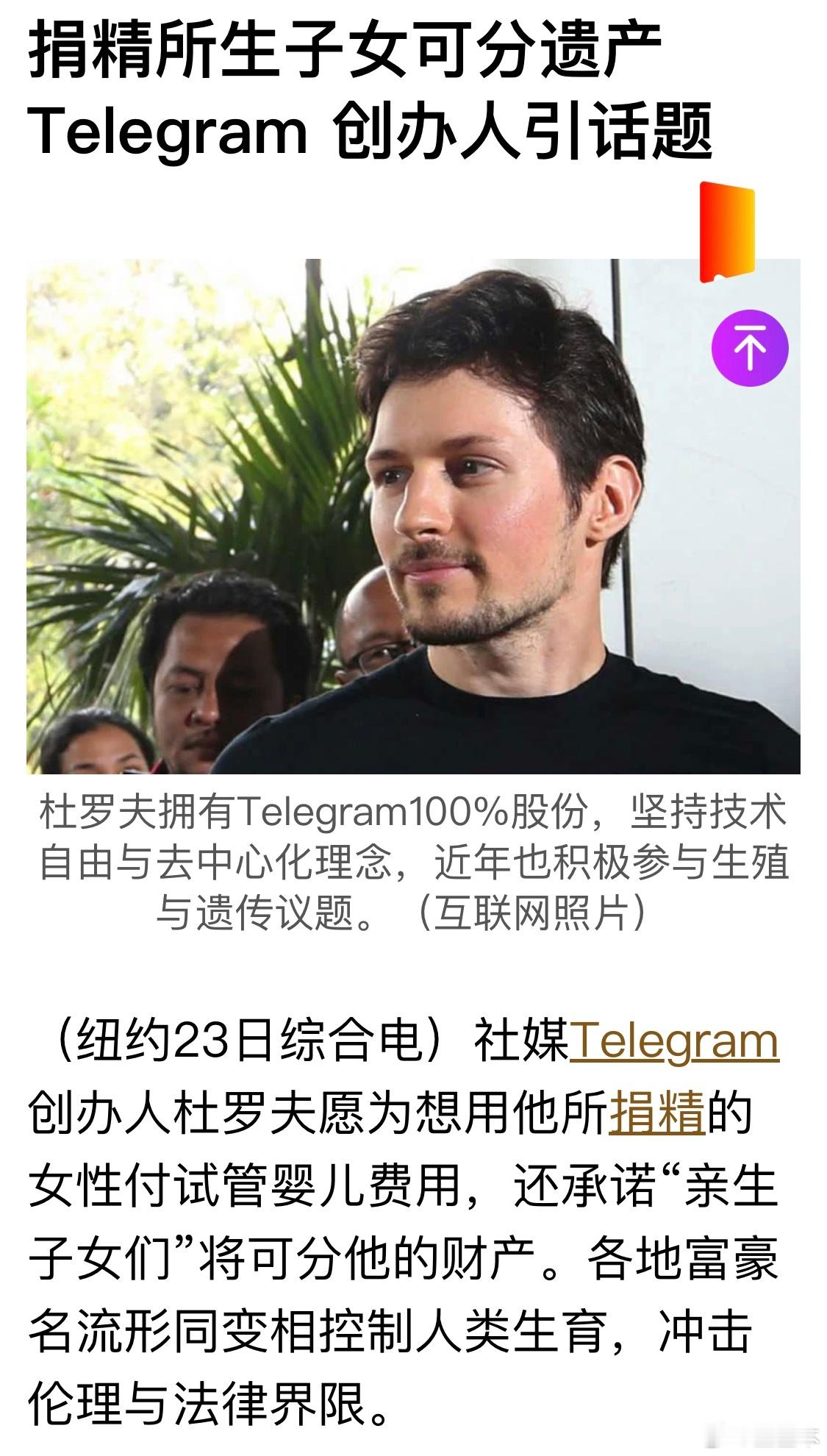 在这个数字技术宣称要解放人类的时代,世人却见证了一场最原始、最荒诞的权力表演。身价百亿的Telegram创始人杜罗夫,正试图用牠那被生殖诊所标榜为“高遗传兼容性”的精子,在12个国家建立一个隐形的“基因帝国”。这不仅是一次公益捐赠的异化,更是一场披着慈善外衣的、病态的自恋狂欢。生殖诊所对杜罗夫精子的宣传,字里行间透着一种令人作呕的优生学冷酷。所谓“筛选胚胎”、“无遗传疾病”、“迷人且受过高等教育的女性”,这听起来不像是人类繁衍的殿堂,倒更像是一座现代化的顶级种马场。杜罗夫将自己包装成应对“全球精子危机”的救世主,但在这种逻辑下,生命不再是基于爱与责任的降临,而被简化成了一组可以被金钱购买、被“贵族基因”改良的工业代码。牠兜售的不是生育的希望,而是一种阶级跨越的幻觉——仿佛注入了这位科技巨头的DNA,孩子就能自带“千亿遗产”的入场券。最令人讽刺的是那个“去世30年后才能继承”的遗产承诺。这哪是遗嘱,这分明是一份长达半个世纪的“电子枷锁”。杜罗夫公开DNA信息,声称为了让孩子们“找到彼此”,实则是为了在数字世界里,建立一个以牠为唯一真神的血缘图谱。牠自诩不干预母亲的选择,却用千亿财富作为悬在100多个孩子头顶的诱饵。这种行为本质上是对生命独立性的亵渎,这些孩子从受精卵时期开始,就被贴上了“杜罗夫产品”的标签,他们的一生都将活在“寻找生物学父亲”和“争夺遗产份额”的阴影下。他们不是独立的人,而是杜罗夫为了对抗死亡、延续存在感而批量制造的“赛博分身”。杜罗夫的行为反映了当代某些俄罗斯及国际土豪暴发户的一种通病——极度的特权傲慢。在牠们眼中,金钱可以买断法律纠纷(要求女性未婚以规避亲权争议),可以垄断生育话语权,甚至可以凌驾于自然伦理之上。当科学与资本结合且失去约束时,世人得到的可能不是“天才的延续”,而是某种社会意义上的“致癌性后果”。这种一人播种、百子共享遗产的怪谈,是对现代家庭伦理的暴力拆迁。它向社会传递了一个极度扭曲的信号,只要足够富有,你的生物本能就可以被无限放大,你的基因就可以像Telegram的安装包一样,在全球范围内肆意分发。杜罗夫在采访中宣称要“去污名化捐精”,但牠的所作所为恰恰给这一行为抹上了最肮脏的底色——金钱、筛选、基因崇拜以及对权力的病态迷恋。这绝不是什么人类文明的福音,而是一个拥有巨大财富的成年人,在面对虚无与死亡时,表现出的一种极其幼稚且危险的抵抗。当生命沦为流水线上的金融衍生品,当父爱被稀释成170亿美元的一百多份借条,世人看到的不是未来的希望,而是文明在金钱面前的一次丑陋下跪。俄富豪捐精百子共享千亿遗产
