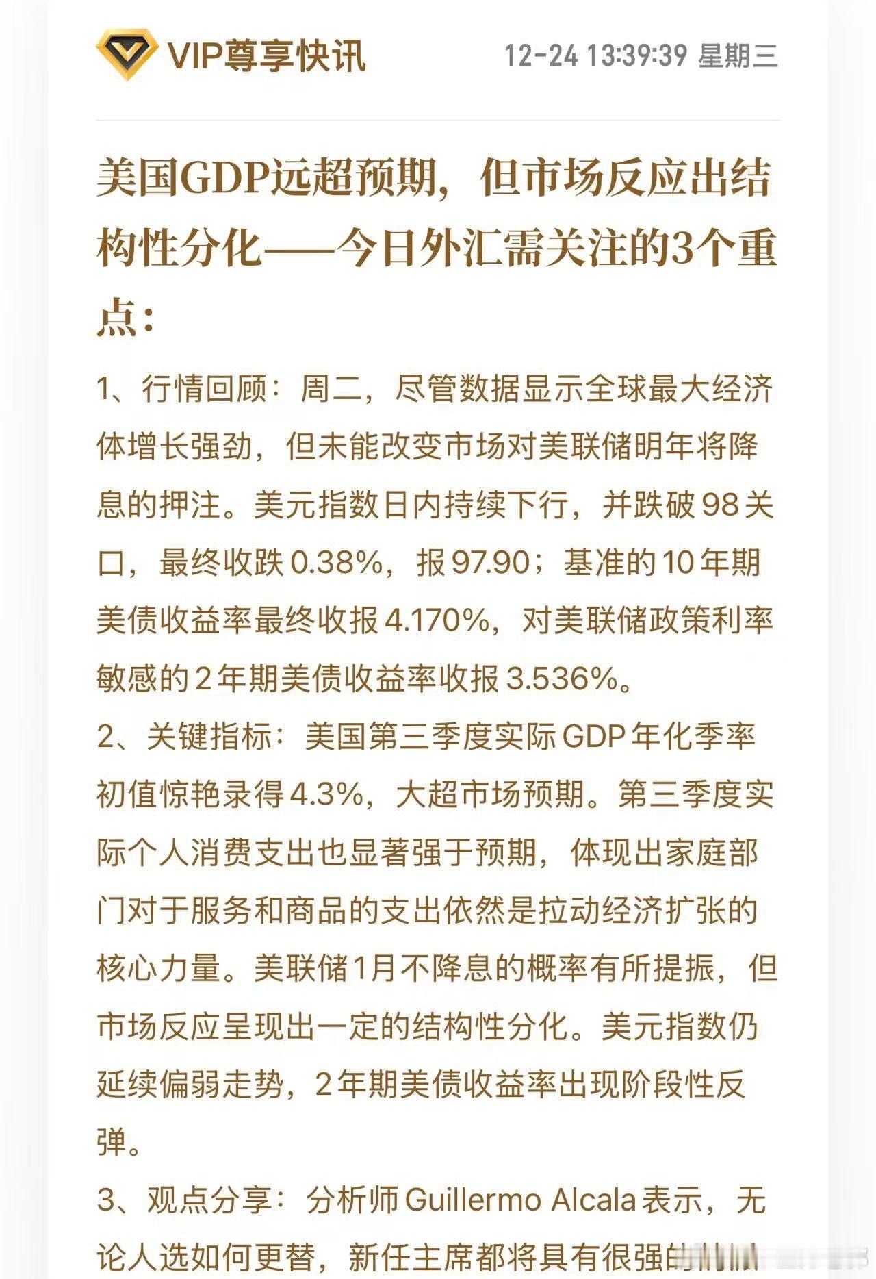 黄金 当美国GDP撞上黄金牛市:繁荣背后的收割逻辑 昨夜美国三季度GDP数据出炉,增长4.3%,远超市场预期的3.2%。消费支出以近一年最快速度攀升,AI投资、出口与政府支出齐齐发力。一个扎眼的问题随之浮现:通胀居高不下,美国人哪来的钱越花越猛? 答案藏在细节里——推动消费的主力是休闲消费、汽车和国际旅行,而买单的人主要是高收入家庭。股市与资产价格上涨带来财富效应,越涨越敢花;与此同时,中低收入群体却在关税压力下收紧支出。一张“K型复苏”的图景,已然清晰。 按理说经济强、通胀黏,降息预期该降温,风险资产应承压。但市场却再次上演逆向解读:纳指与芯片股狂欢,金价同步攀升,二月期金站上4500美元。华尔街的逻辑悄然转向——数据虽强,但市场更关注“谁将接棒鲍威尔”,以及明年可能出现的“衰退剧本”。眼下,两次降息的预期仍被牢牢计价。 这种“表面繁荣”与“预期博弈”交织的剧情,在黄金市场有着另一番演绎。 黄金近期持续拉高,看似牛市重启,却让不少散户望而却步。往往就在大众犹豫时,行情悄然启动。前一阶段套牢的投资者陆续解套,而市场很快会迎来一波中幅回调——那正是为下一轮上涨蓄力的上车机会。 随后,价格再次猛涨,市场情绪转向一致看多。散户纷纷涌入,甚至不惜加杠杆、贷款进场。就在情绪升至顶峰时,利空消息常会突至,引发大幅砸盘。一日内波动几十美元变得常见,恐慌蔓延,爆仓与割肉相继发生。 待这波人离场,金价再次拉起,吸引“抄底”资金入场。随后继续下杀,形成第二波收割。之后市场往往进入漫长横盘,波动极小,消磨耐心。唱空声音渐起,机构纷纷提示牛市结束。直到多数人失去信心时,新一轮行情再次暗中启动。 你会发现,黄金牛市并非所有人都能赚钱。每一次循环,都伴随着追涨杀跌者的损失,和耐心持有者的收益。市场总在情绪极端时反转,在众人放弃时重生。 其实,无论是美国经济数据的“强势表象”,还是黄金牛市的“循环剧本”,背后都是同一套逻辑——市场永远在预期与现实之间摆动,在情绪极端处完成财富转移。真正的风险往往隐藏在一致性乐观之中,而机会则诞生于多数人尚未察觉之时。 在这个被叙事与预期主导的市场中,保持清醒或许比追逐热点更为重要。经济数据可以超预期,黄金可以创新高,但若看不懂数据背后的结构分化、读不懂波动背后的人心周期,那么无论是股票还是黄金,都可能在繁华声中,悄悄完成对你的收割。 牛市不造就股神,周期不怜悯情绪。有时,最好的操作不是预测下一步,而是守住自己的节奏,等风来,等浪退,等市场把最真实的逻辑,写在时间与价格里。