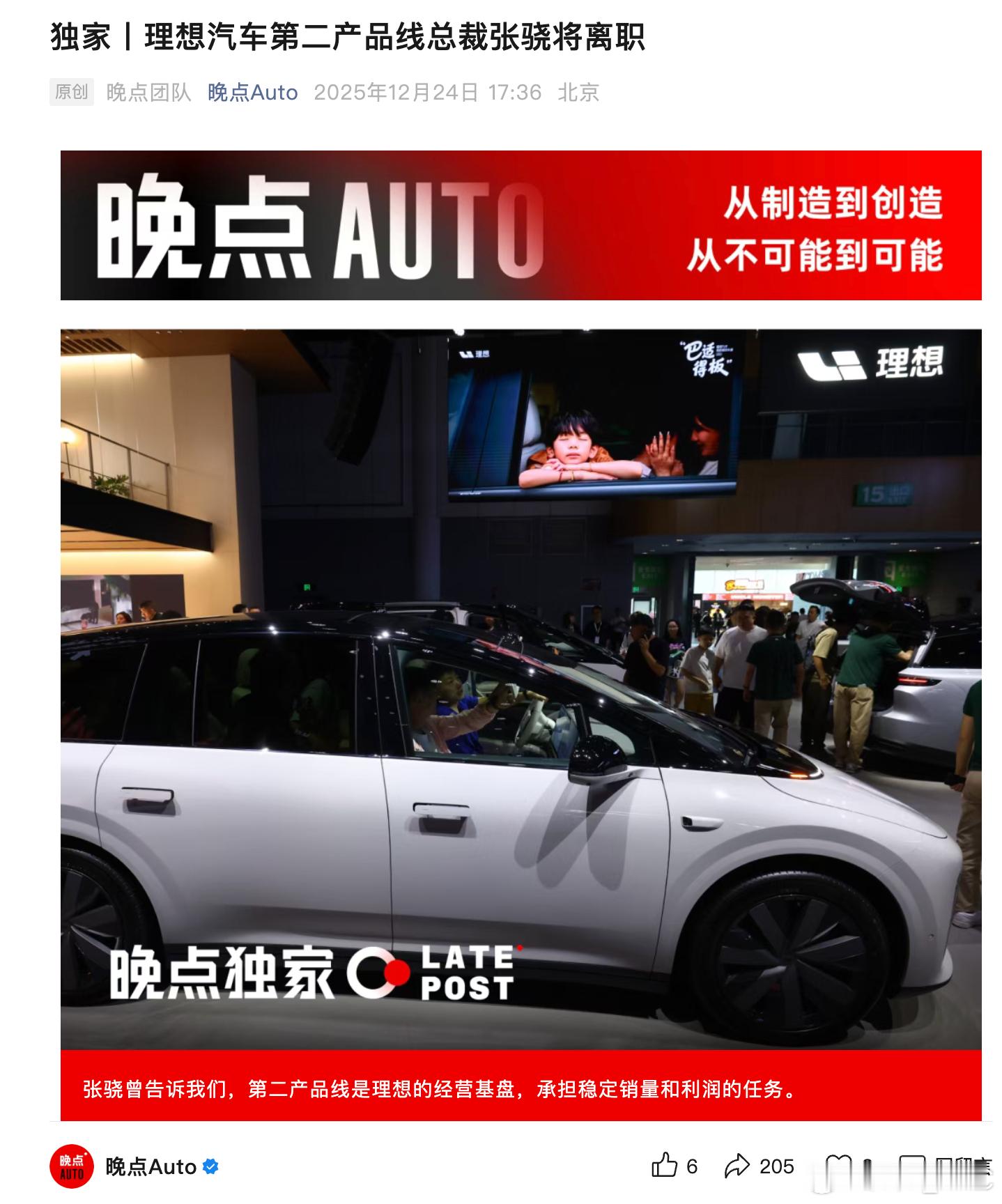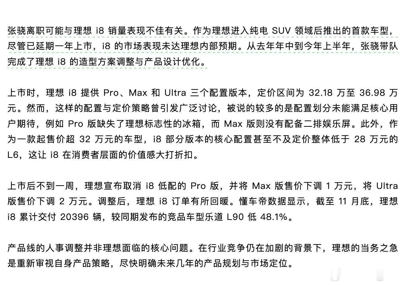 晚点Auto 独家报道:理想汽车第二产品线总裁张骁离职。我去.....报道只提到,张骁离职可能与理想 i8 销量表现不佳有关。但看最近i8的销量,已经逐渐爬升到单月7000台左右,按理说也不应该啊?真实原因是啥啊? 理想汽车第二产品线总裁张骁将离职