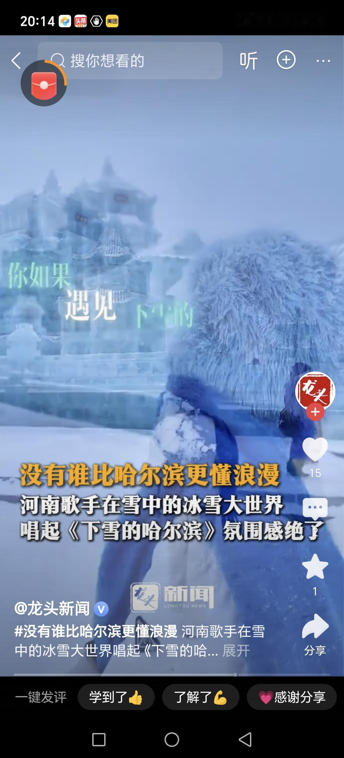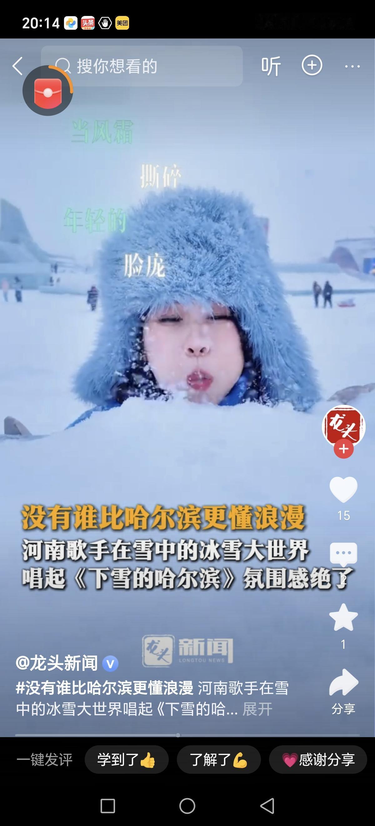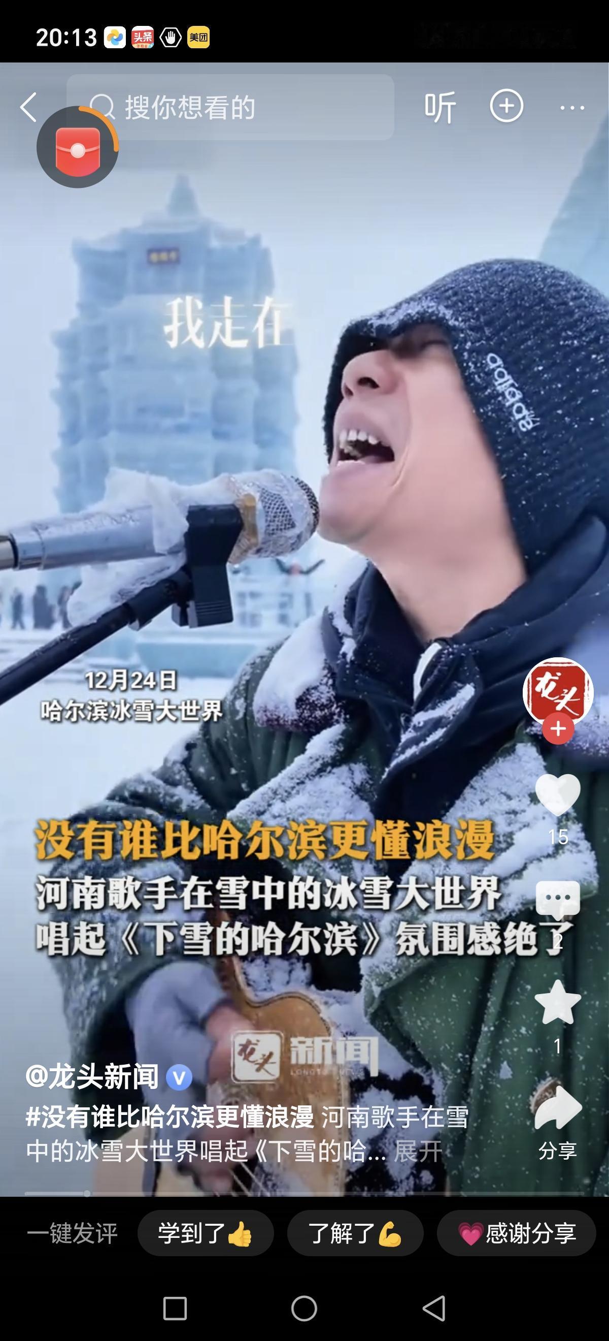 雪后哈尔滨,仿佛进入了童话世界。那一片洁白如洗的雪景,将城市装点得格外纯净、宁静,也让人心底泛起一股无法抗拒的浪漫情怀。没有哪个城市比哈尔滨更懂得用雪来表达它的温柔与热情,每一片飘落的雪花,似乎都在诉说着属于这座北国之城的独特记忆。 这天,一位河南的歌手,携带着歌声,站在冰雪大世界的舞台上,用那深情款款的声音唱起了《下雪的哈尔滨》。歌曲飘荡在空气中,穿越雪幕,直抵每一个听众的心底。伴随着晶莹剔透的雪花,歌声仿佛变成了雪的诗篇,静静讲述着这座城市的故事:那些漫天飞舞的雪花,是冬天最温暖的拥抱;那些冰雕灯光,是北国夜色最璀璨的星辰。 此刻的哈尔滨,氛围感爆棚。街头巷尾,红灯笼映衬着洁白的雪地,烤红薯的香味弥漫在空气中,暖意融融。游客们裹着厚厚的棉衣,拿着热腾腾的奶茶,笑声在雪地里回荡。冰雪世界的灯光仿佛点亮了每个人的心房,让所有烦恼都在这银白的世界里融化。站在冰雕前拍照留念,感受那份由冰雪构筑的奇幻,仿佛置身童话之中。 而那一首《下雪的哈尔滨》,更像是一场关于城市与情感的浪漫对话。歌声中,融入了对这座城市深深的爱,也唤起了无数人对家乡、对故土的眷恋。雪,是冬天最纯粹的礼物,也是哈尔滨最浪漫的符号。在这个季节里,无论你身在何方,只要一想到哈尔滨的雪,都能感受到那份温暖与诗意。 这场雪,不仅仅是自然的奇迹,更是哈尔滨人对生活的热爱与坚持。每一场雪,都像是上天赋予人们的礼物,让我们在寒冷中找到温暖,在静谧中感受到力量。哈尔滨的雪,是浪漫的载体,是情感的纽带,也是连接过去与未来的桥梁。 所以,下次当你看到雪花飘落,不妨想象一下那位在冰雪大世界唱着《下雪的哈尔滨》的歌手,和那座城市的每一份温情。或许,我们每个人都可以在这片白雪皑皑中,找到属于自己的那份浪漫和感动。哈尔滨的雪,不只是季节的变幻,更是心底最纯净的记忆。哈尔滨冬天 哈尔滨玩雪攻略