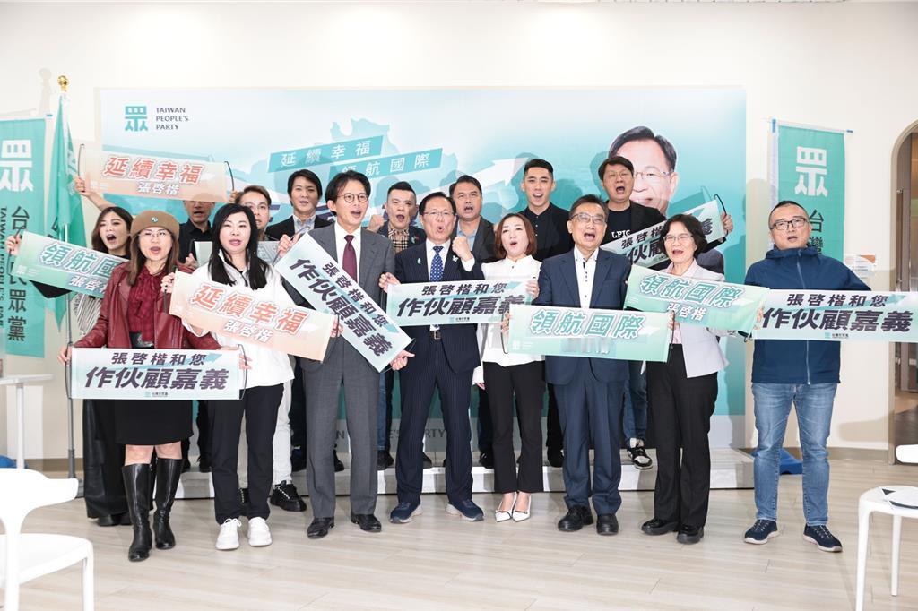国民党主席郑丽文、民众党主席黄国昌将于25日见面,宣布共推「国民账户」,让每位12岁以下孩童账户存入一笔5万元基金,且家长可提拨做基金操作。黄国昌24日表示,当执政党不断撕裂这个社会,在野党要负责撑起整个社会,因此「台湾未来照护TFA」具体内容,将于明早10时跟人民详细报告。图为民众党24日下午举办举办「作伙顾嘉义!民众党征召张启楷参选嘉义市长」记者会。
