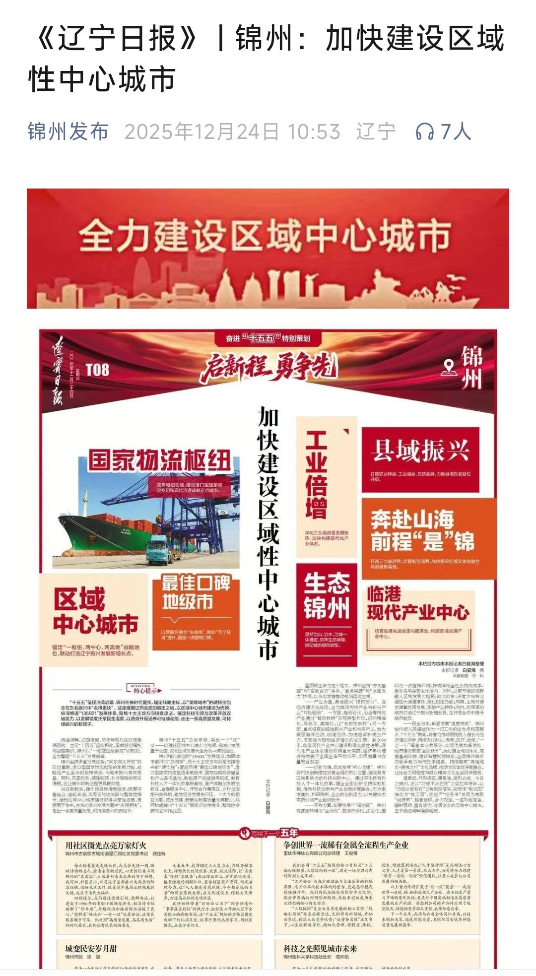恭喜锦州、恭喜锦州。从今天上午的最新消息看未来几年锦州要加快建设区域中心城市。从这个细节可以看出锦州在医疗、教育、交通、物流、旅游等方面确实是辽西地区最出类拔萃的,如果锦州能够发展起来可以辐射盘锦、葫芦岛、阜新、朝阳。 届时除了沈阳、大连之外,锦州将成为辽宁省的第二增长极。如果要说有什么短板那就是锦州目前的产业结构还是有很大的提升空间,如果这方面能有所提高锦州可真正做到无懈可击。