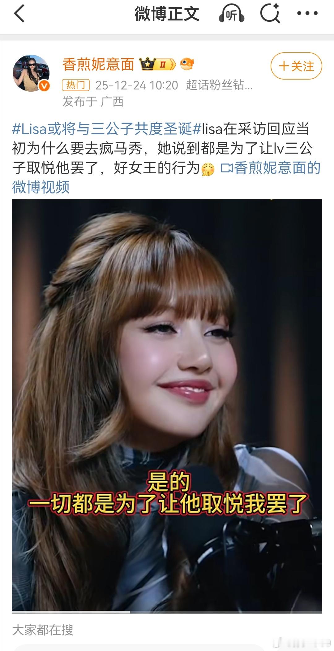 好女王的行为?兄弟,这个你也夸的下去啊Lisa或将与三公子共度圣诞