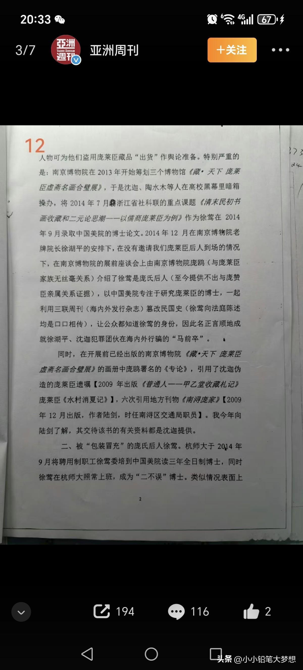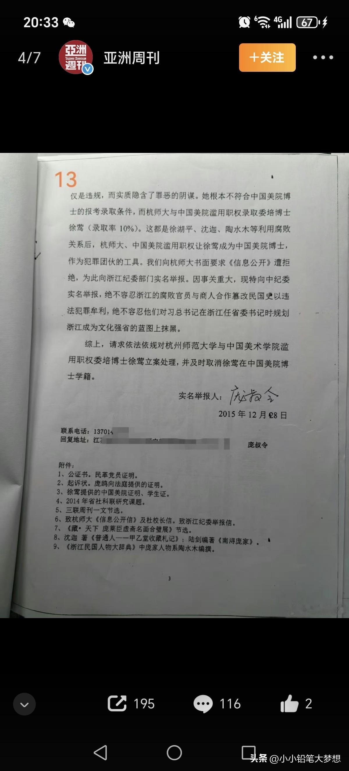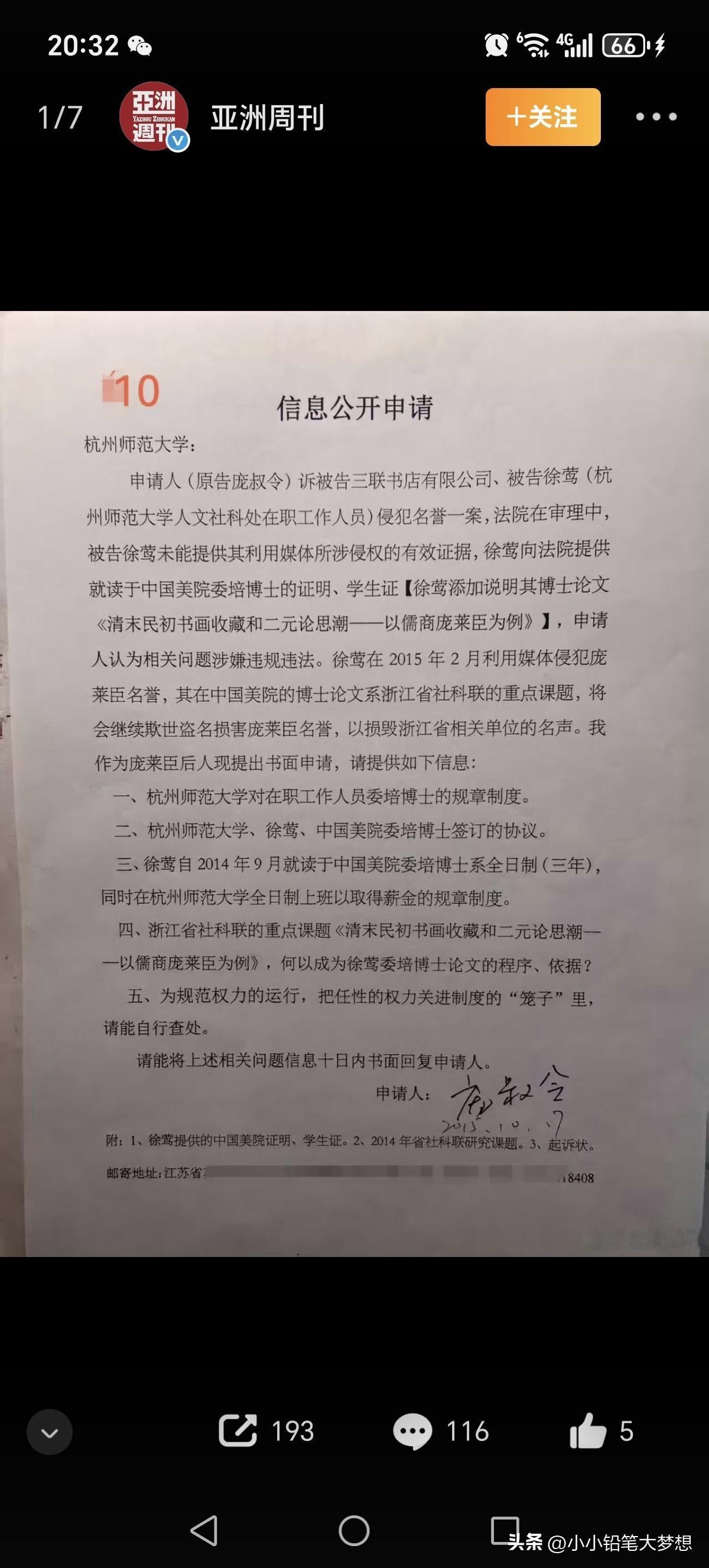 刚刚亚洲周刊受权发布了:庞叔令致杭州师范大学的系列信 ,不得不佩服这个徐莺到底是有什么厉害之处?能够从一个生物系的,跨界到文物界,还被包装成收藏世家的后人。 有人为她背书,站台,而且还是以委培生的身份,进入了名牌大学美术系。 她不但身份造假,而且在败诉之后,没有受到一丁点的影响,她的仕途还扶摇直上,还成为美术史系的博士,最后成为了一所名牌大学的副教授。 造假零成本,被举报还毫发无损,活脱脱又是一个文物界的董小姐!