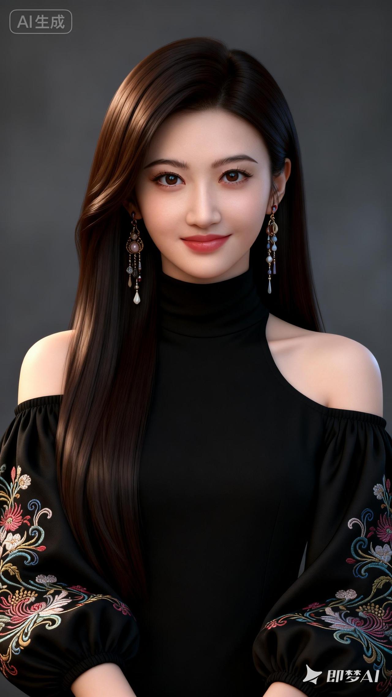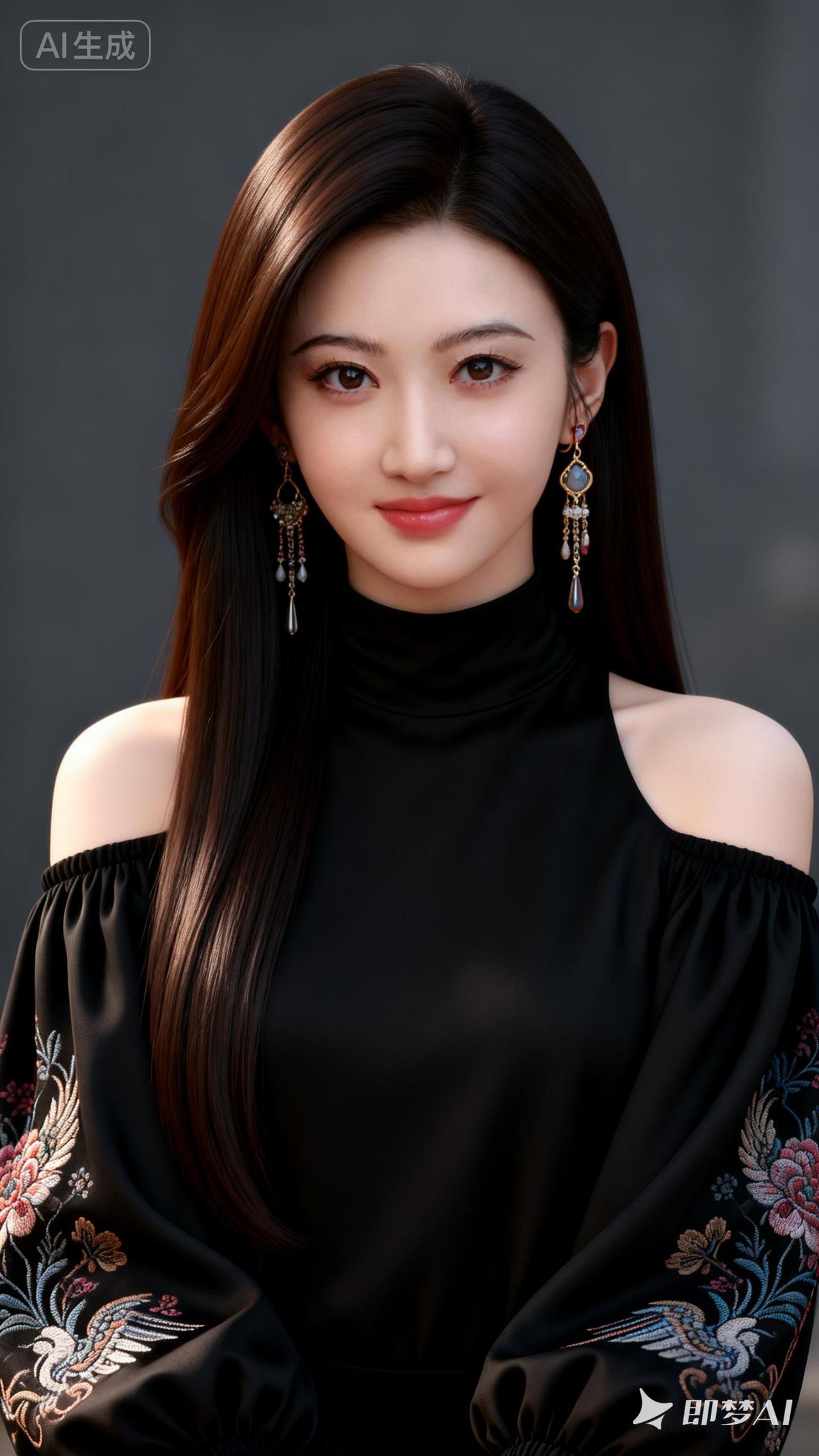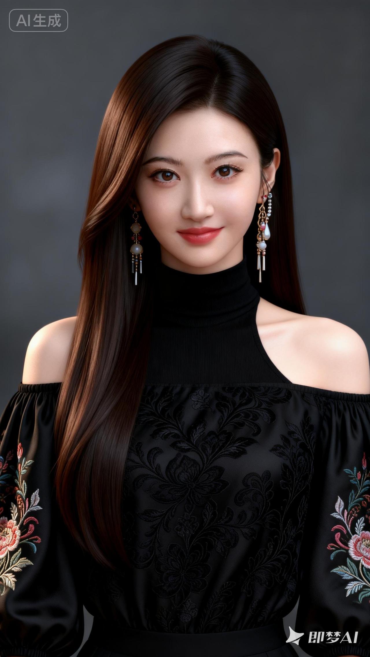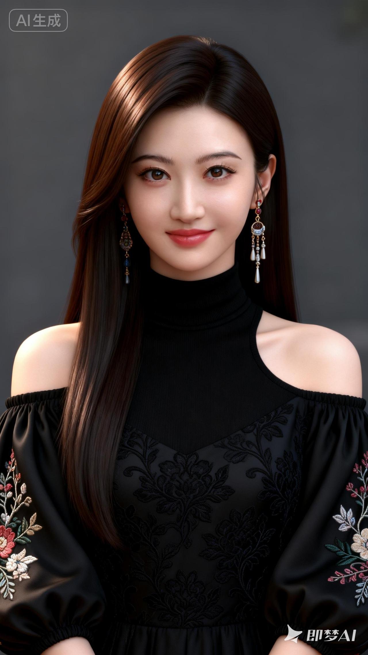 温柔微笑,红衣少女,时尚耳环,气质优雅