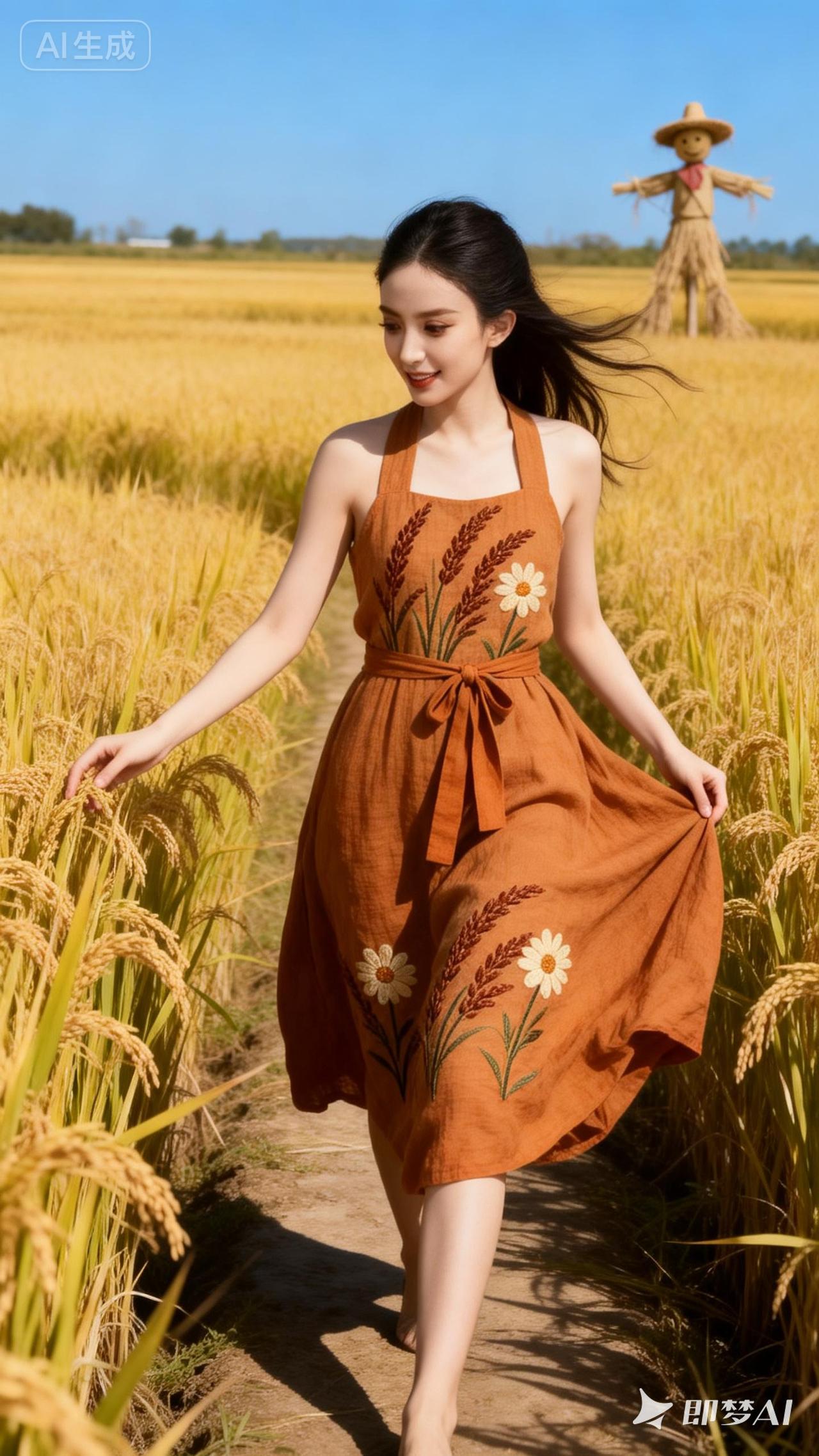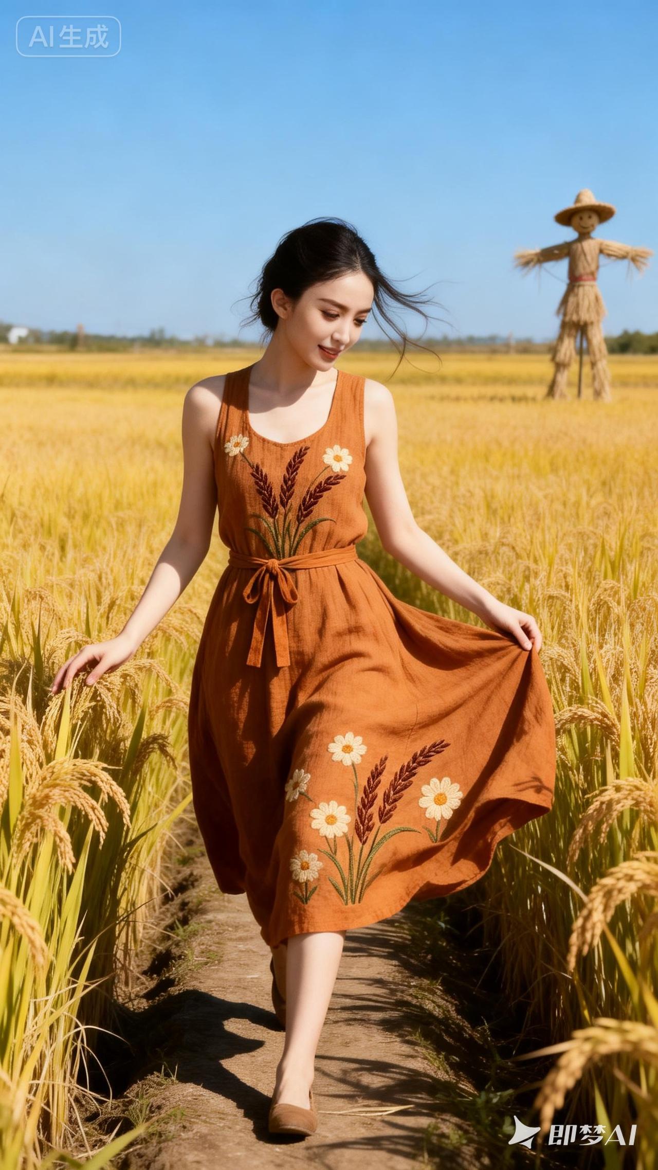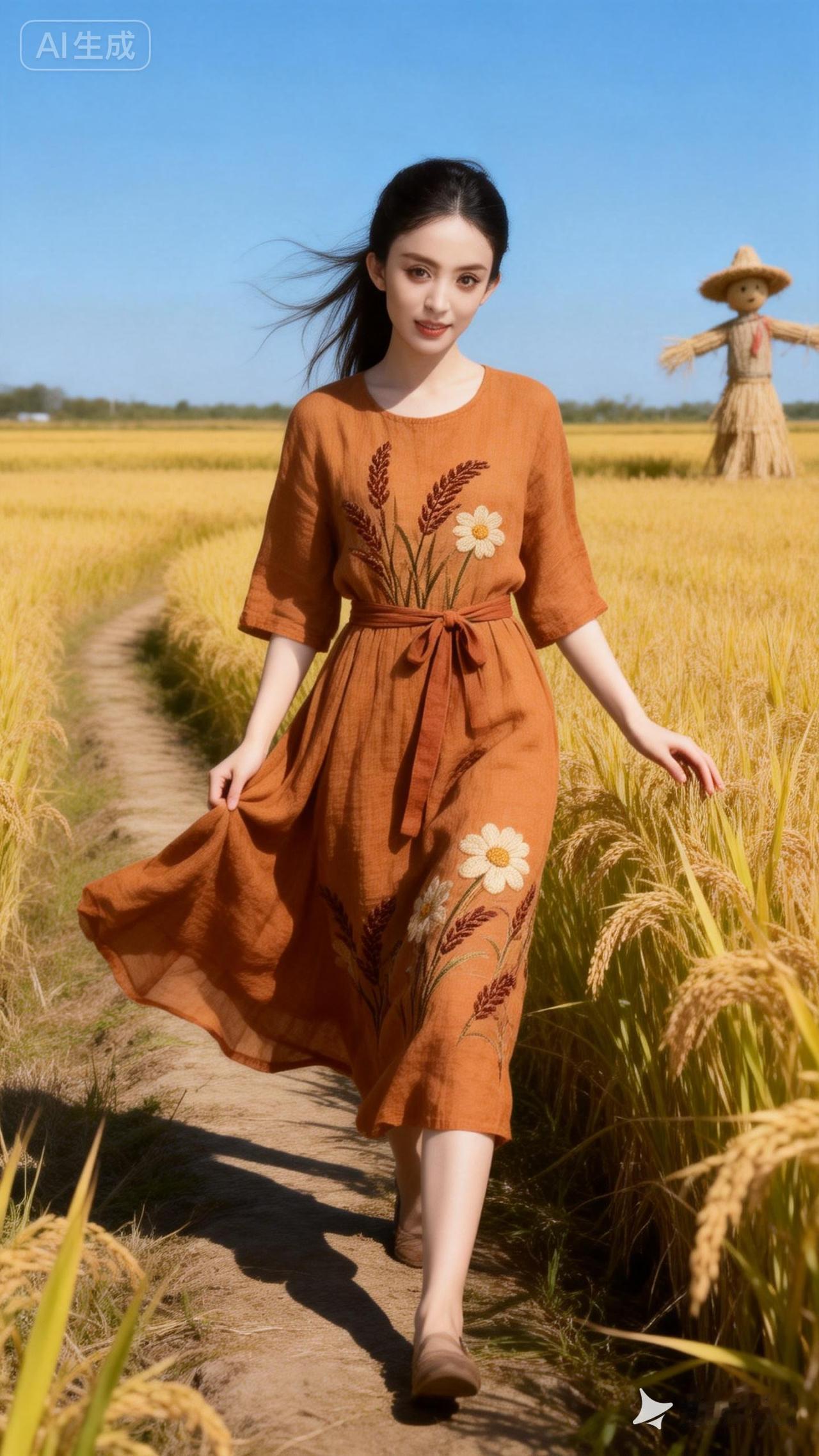 夕阳下的浪漫漫步,裙摆随风飘扬,美不胜收。