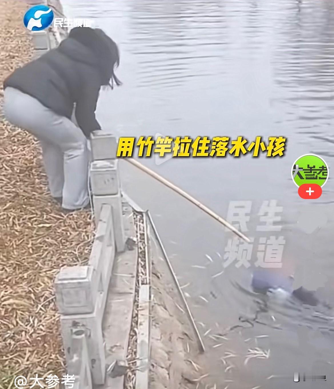 近日,河南长垣一河中母子俩落水呼喊救命,看到有落水者,岸上一黑衣女子有勇有谋用竹竿救孩子妈妈,孩子妈妈在水里时就说“救救我的孩子”,黑衣女子把孩子妈妈拉上岸后,赶紧把竹竿递给孩子,用竹竿拉住落水小孩,小孩还在说“救救我”,众人合力将孩子拉上岸,把孩子吓坏了,孩子妈妈上岸后就爬向了孩子…… 孩子得救后,黑衣女子又把棉衣脱下来给孩子穿上…… 太感人了,救了母子俩,母子俩真是命大福大,遇见贵人了…… 家长也要教育孩子安全常识,注意安全…… 为救人者点赞[赞]