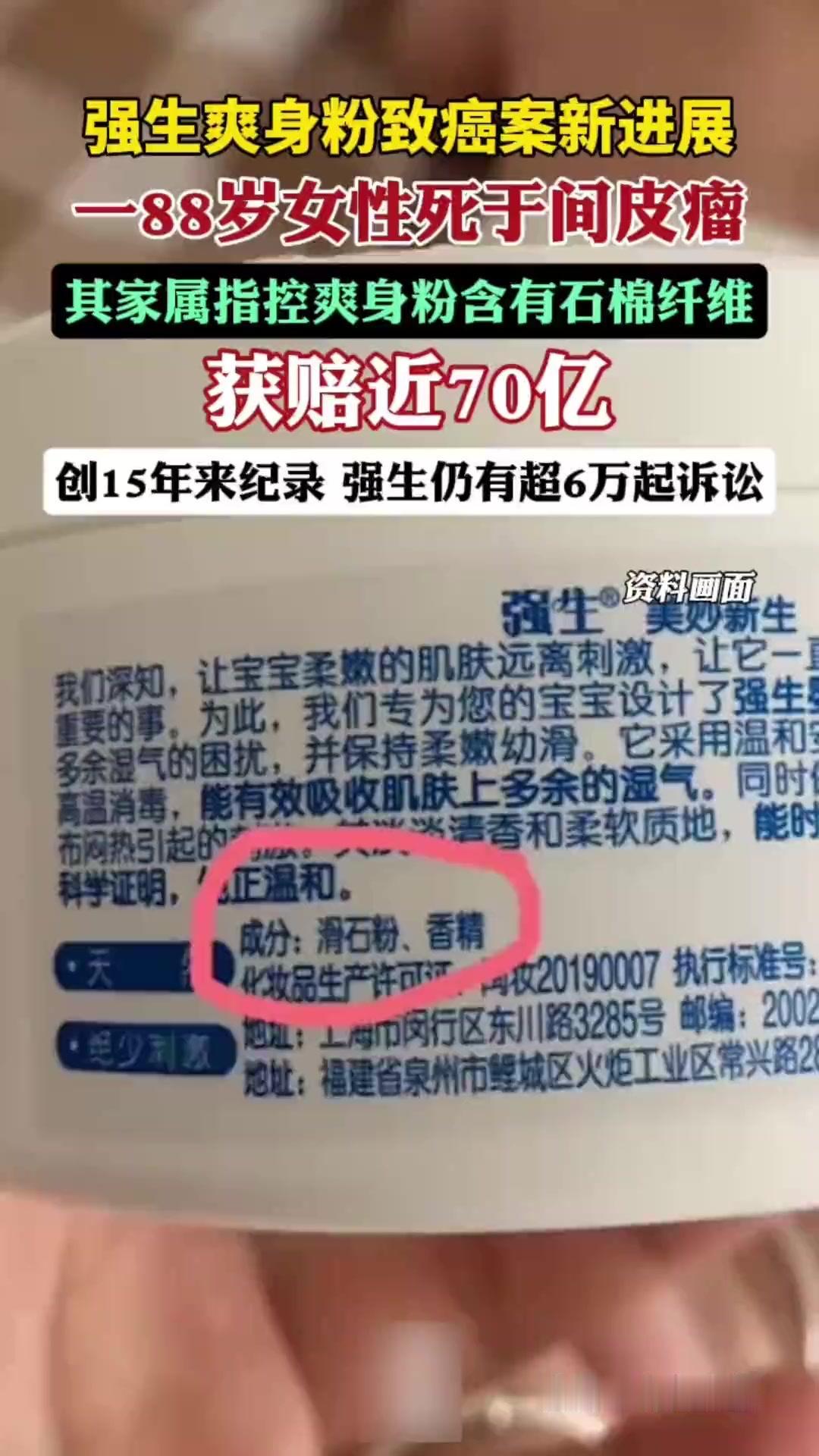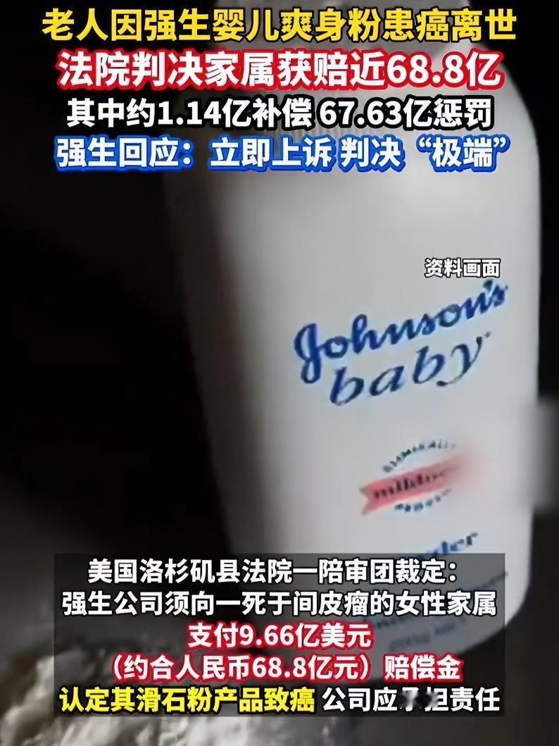 强生爽身粉致癌案判赔110亿!这场迟到的正义,撕开了巨头最丑陋的遮羞布 强生爽身粉致癌案再爆天价判决!当地时间12月22日,美国马里兰州陪审团一锤定音:强生需向一名因使用其婴儿爽身粉罹患间皮瘤的女子,支付约110亿元人民币赔偿。这则消息炸屏的瞬间,无数网友怒喊“大快人心”,可在这天价赔偿背后,藏着的是一个家庭的破碎,更是无数消费者被辜负的信任。 谁能想到,那罐承载着80后、90后童年记忆的“母婴安全代名词”,竟是潜伏数十年的健康杀手?原告从年少时便开始使用这款爽身粉,从未怀疑过百年巨头的安全承诺,直到癌症降临才如梦初醒。而更令人齿冷的是,法庭证据显示强生早在20世纪70年代就知晓滑石粉中可能含有致癌石棉,却为了商业利益刻意隐瞒,任由消费者在不知情中暴露风险。 这110亿赔偿,从来不是“天降横财”,而是用病痛和岁月换来的公道。要知道这起诉讼只是冰山一角——目前强生面临的相关诉讼已超6.7万起,无数受害者或因卵巢癌离世,或被间皮瘤折磨,她们中有人使用爽身粉长达三四十年,把对品牌的信任变成了伤害自己的利刃此前强生曾三次试图通过破产重组逃避责任,却均被法院驳回,这场持续15年的维权之战,每一步都浸着受害者的血泪。 有人说“110亿对强生只是九牛一毛”,毕竟其2025年上半年营收就高达456亿美元。但这场判决的意义,早已超越金钱本身:它告诉所有企业,安全不是可妥协的营销话术,诚信不是能抛弃的商业成本;它也给消费者吃下一颗定心丸——哪怕面对巨头,只要权益受损,坚持维权就有希望等到正义。 如今强生虽宣布上诉,还坚称产品“安全合规”,但全球范围内停售含滑石粉爽身粉的举动,早已暴露了其心虚。这场判决更敲响了行业警钟:从母婴用品到日常护理,消费者的信任容不得半点欺骗。 你家里是否还藏着含滑石粉的爽身粉?你认为该如何加强日化产品的安全监管?需要我帮你整理一份常见日化产品致癌物避雷清单吗?