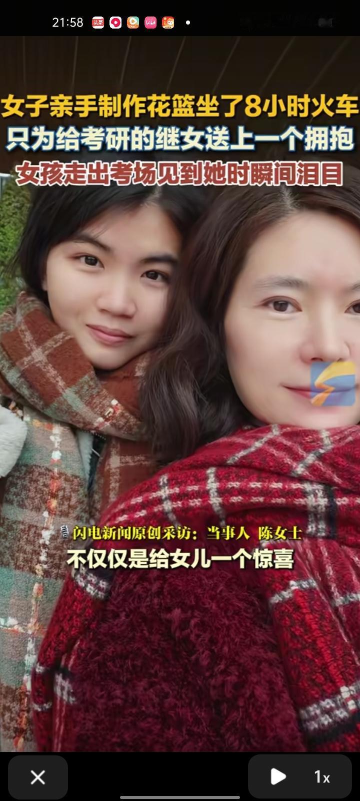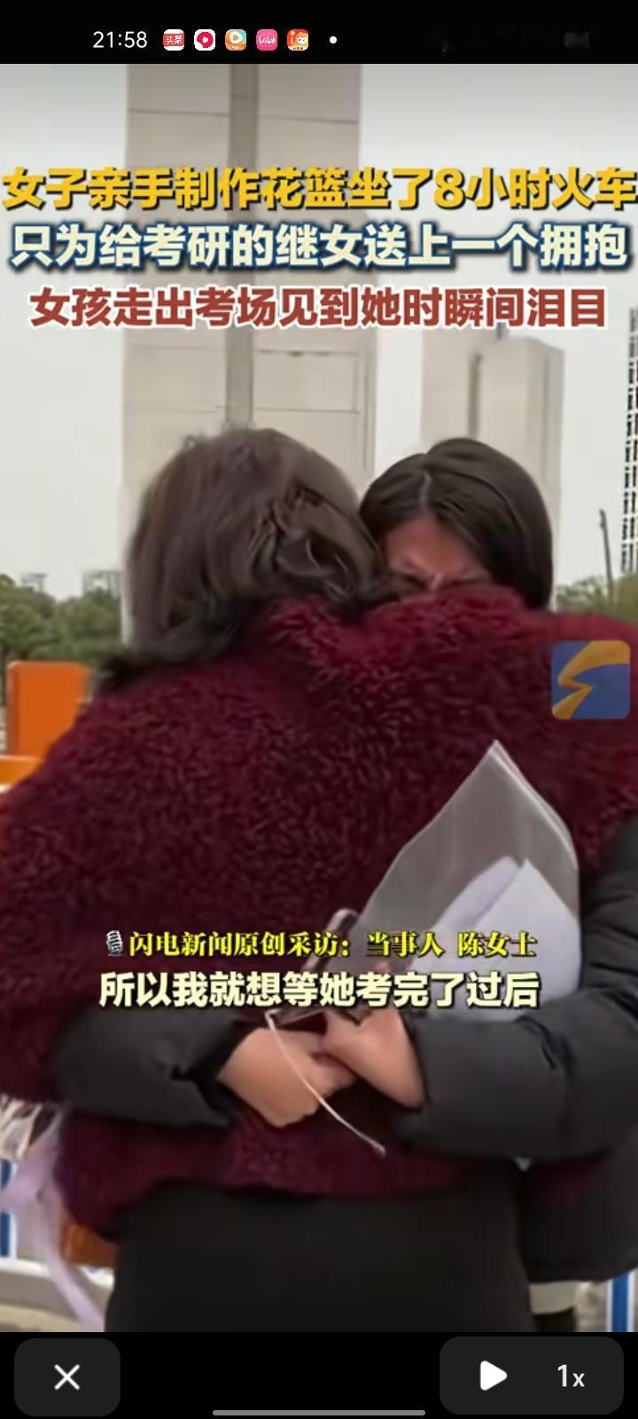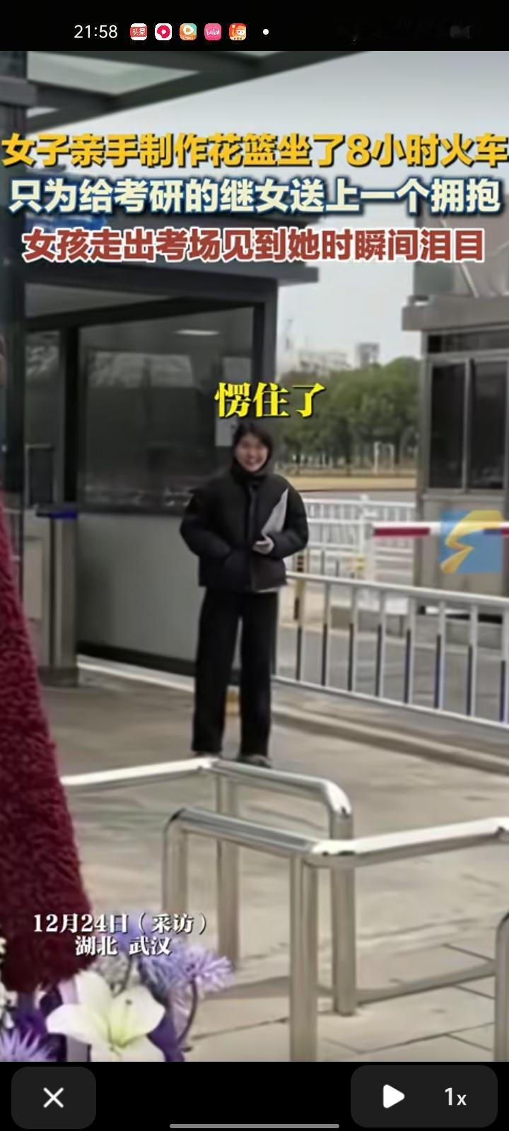12月22日,湖北武汉。女子亲手制作花篮,坐了八小时的火车,只为给考完研的继女送个惊喜。 当事人陈女士称,继女考研前那一阵特别辛苦,她经常会在晚上给我发消息说“太累了”,听闻后真的很难过,不知该怎么去帮她。就想着等她考完后,不仅仅是给女儿一个惊喜,而是想在最疲惫的时候给她一个拥抱。