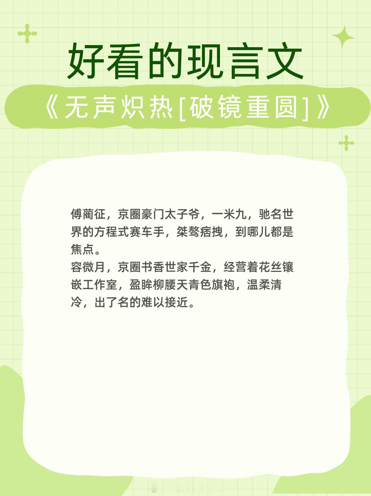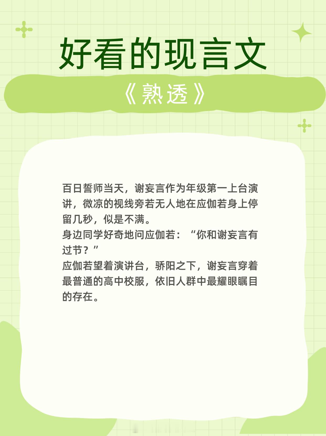 好看的现言文,好好恋爱,天天向上。1、《小年小月》作者:耳东兔子2、《不入爱河》作者:蒋牧童3、《无声炽热[破镜重圆]》作者:慕义4、《明日如昼》作者:随侯珠5、《叮!甜度已超标》作者:弱水千流6、《难渡》作者:槐故7、《熟透》作者:臣年8、《你若南风》作者:梦筱二9、《炙吻》作者:弱水千流这小说真的超绝 这小说硬控我十分钟