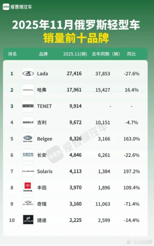 俄罗斯今年对中国卡的有点狠。基本所有的国产车型出口俄罗斯的量都在大幅下滑。2024年10月起将进口汽车报废税提高70%-85%,2025年再上调进口关税至20%-38%,单辆车清关成本最高增加2655元。同时俄方封堵中亚转关漏洞,要求补缴全额税费,彻底削弱中国车价格优势。叠加卢布贬值与30%的高汽车贷款利率,进口车的消费需求被严重抑制。2025年前9个月中国对俄汽车出口35.77万辆,同比大幅下滑58%;其中前4个月出口15.1万辆,同比降幅超50%,较前3个月39%的降幅进一步扩大,下滑趋势持续加剧。两年前,俄罗斯还是我国汽车的第一出口大国,现在可能已经滑出前三了。不过俄罗斯想重建本土汽车行业,也没那么容易,因为即便排挤中国汽车,但是俄罗斯本土汽车品牌的关键零部件还是基本来自中国。