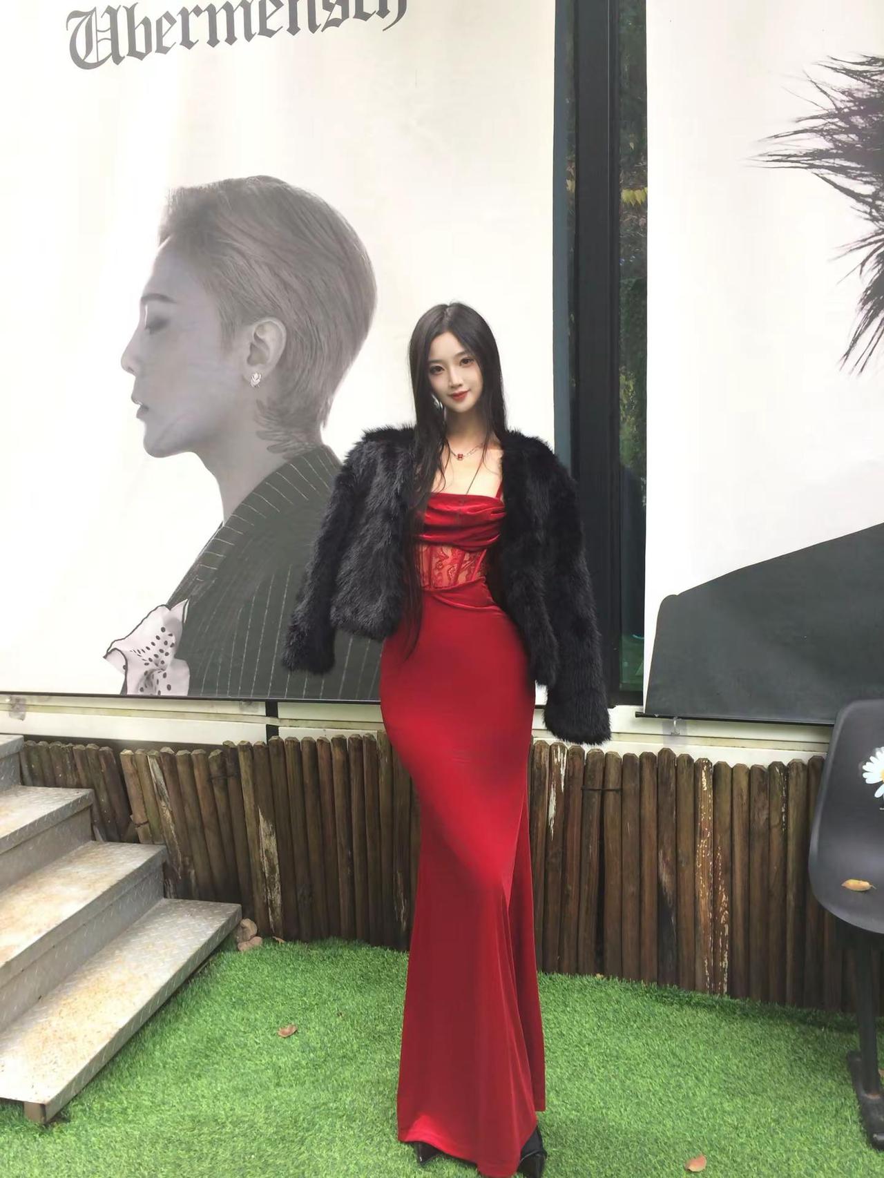 《蝶恋花·红妆雪鹿》 红袄金簪妆雪境,裘领堆霞,艳压枝头杏。 轻抚麋茸凝睇静
