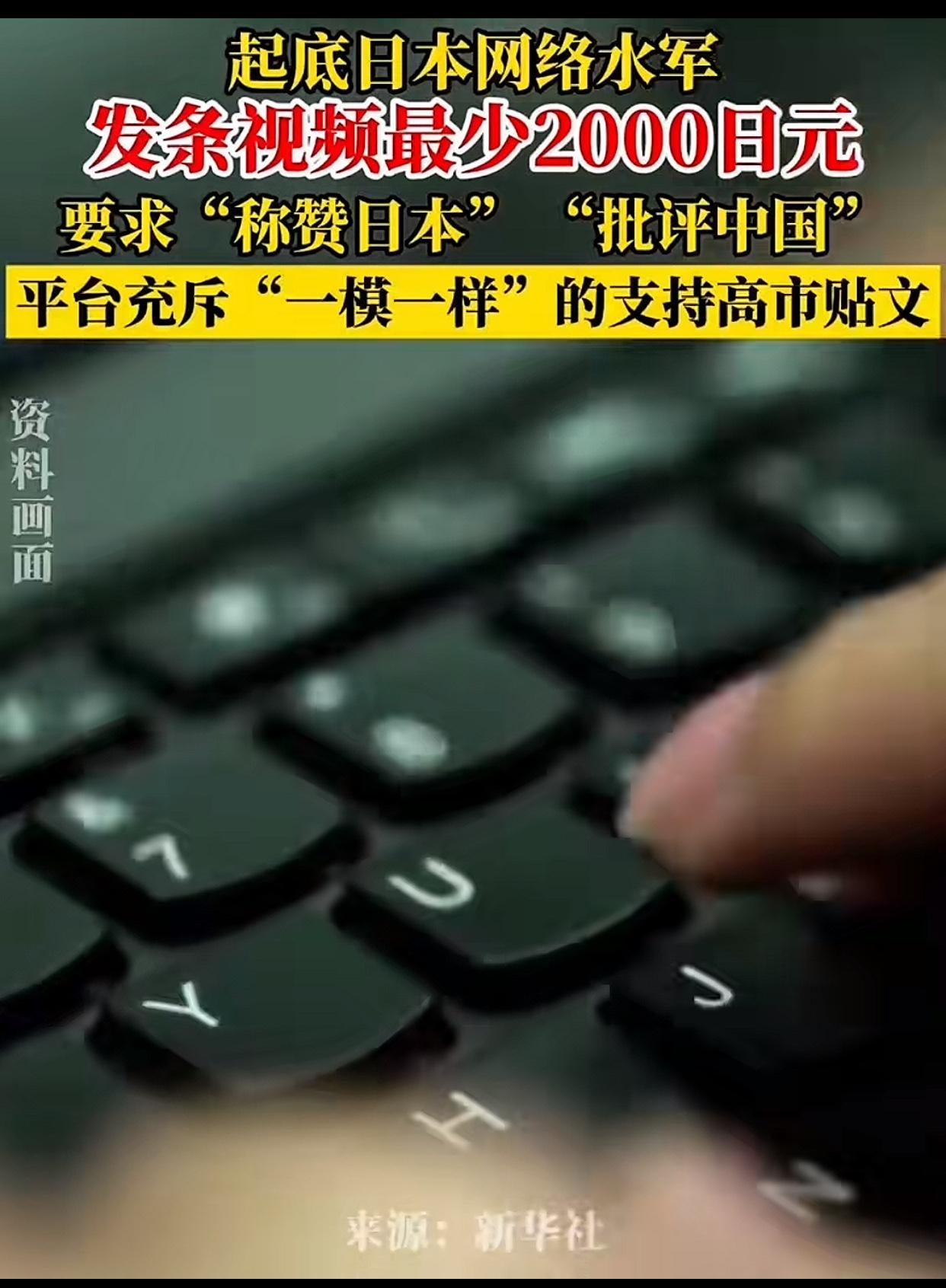 发抹黑中国视频就赚2000日元! 不是美国, 不是印度,而是 小日子在搞鬼 注意了!据日本《朝日新闻》曝光,当地数字公司在众包平台公然招募水军,专发“批中捧日”的视频,一条就能薅2000-4000日元,干满一个月还能加薪升职! 内容全是挑所谓“中国人不文明举动”瞎编乱造,说句掏心窝子的话,为了这点碎银子就昧着良心抹黑祖国,真的又蠢又坏!这些人拿着钱干缺德事,根本不管会不会破坏咱们国家的形象。 这些水军的内容全是断章取义带节奏,大家刷到这类视频一定要多留个心眼!这种歪风邪气真该好好整治!评论区聊! 日本评论中国 网络水军是否要整顿