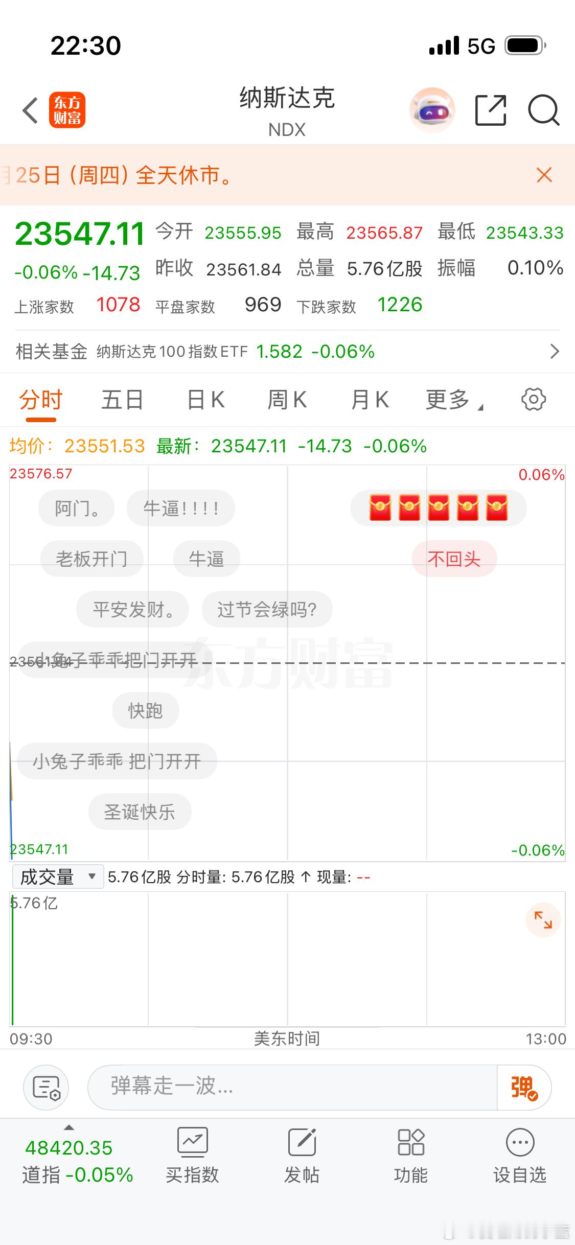 美股开盘小绿。今天美股因圣诞节提前休市。