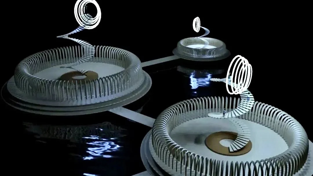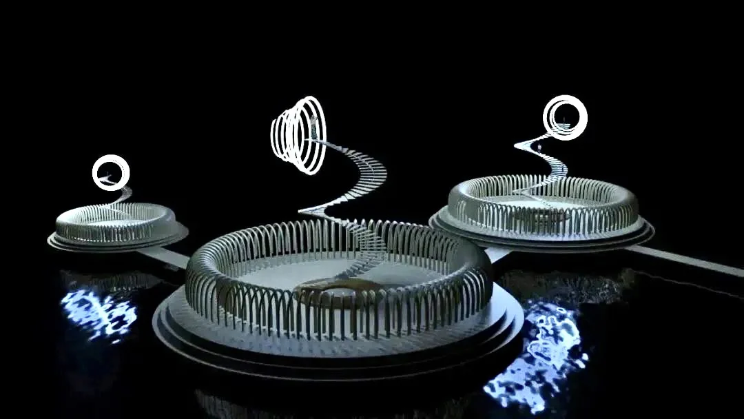 《桎梏之地》——陈彦冰 概念阐述: 这个模型是三个重生之门,未来可能会出现这种东西,人们可以到通过最高处的光圈进行重生,重生的路上要经过这个又高又抖的楼梯,无限循环的拱门也代表着未来人生的尽头是重生。