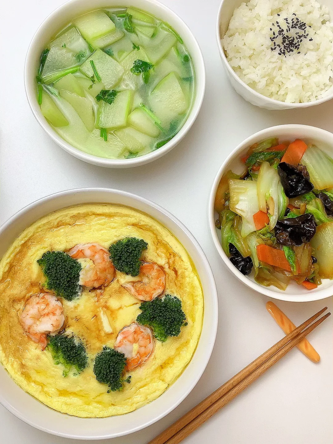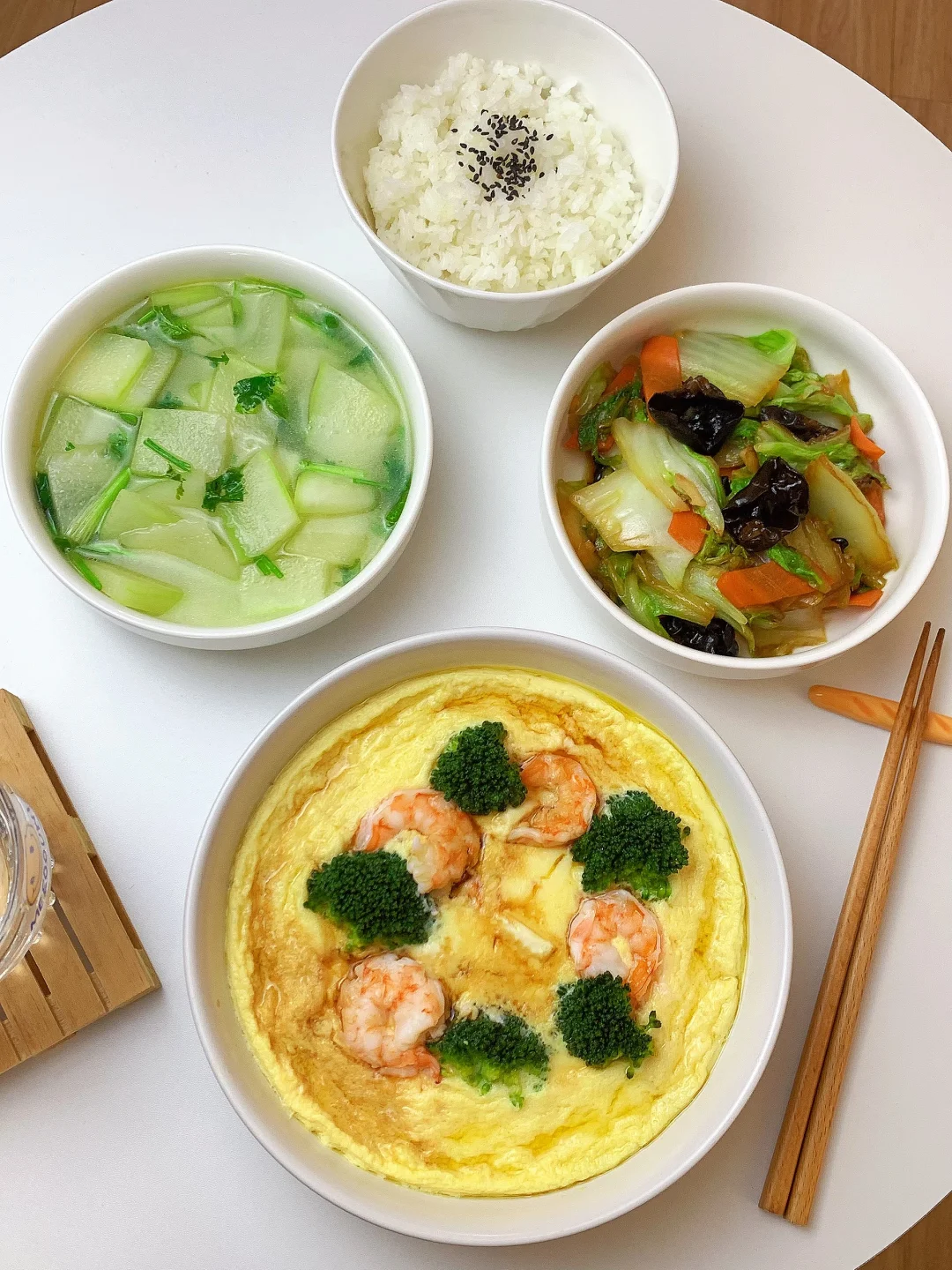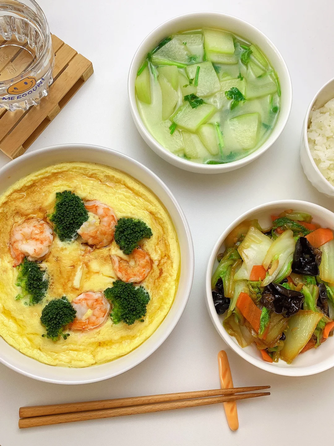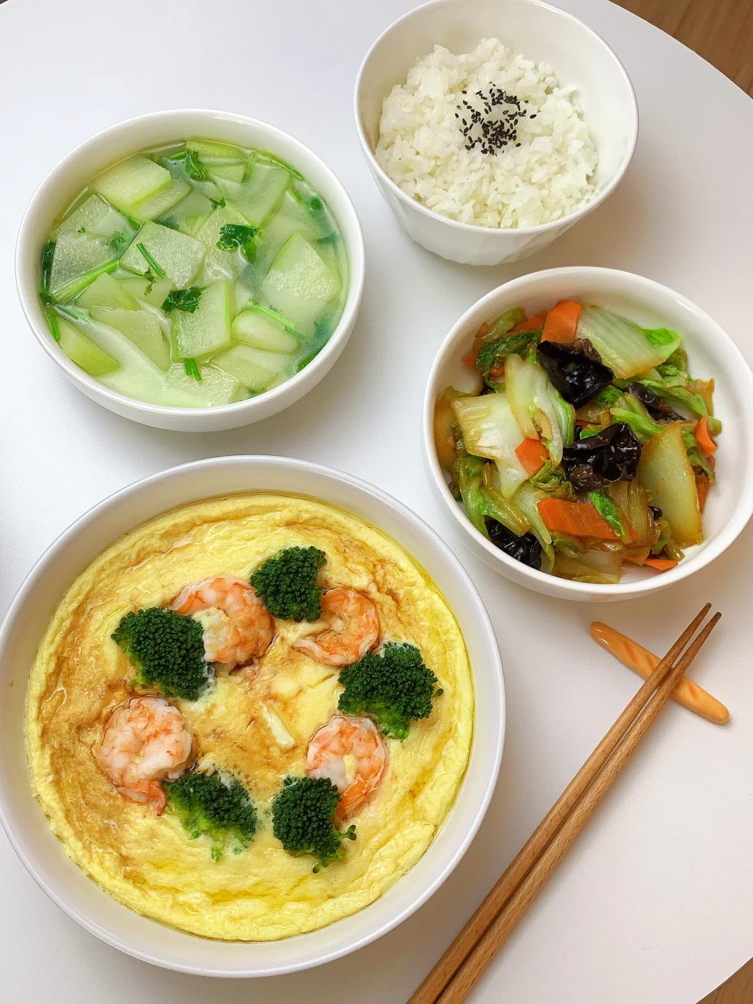 👩🏻🍳分享今日菜单 1️⃣冬瓜汤 2️⃣白菜木耳胡萝卜🥕 3️⃣🥦虾仁豆腐蒸蛋 主食:米饭🍚 ……………………………………………………………………………… 🛒食材清单: 虾仁🍤 |鸡蛋 | 豆腐 | 西兰花🥦 | 白菜 | 木耳 | 胡萝卜🥕 | 冬瓜 📝早八打工人的一日三餐,拒绝外卖[偷笑R],坚持做饭的又一天,吃简单干净的饭菜~ ₍˄·͈༝·͈˄*₎◞ ̑̑