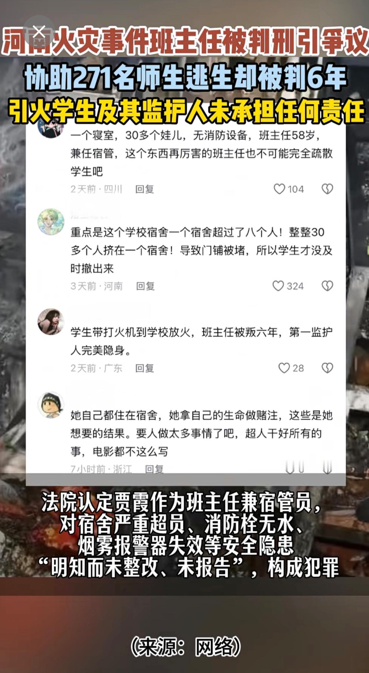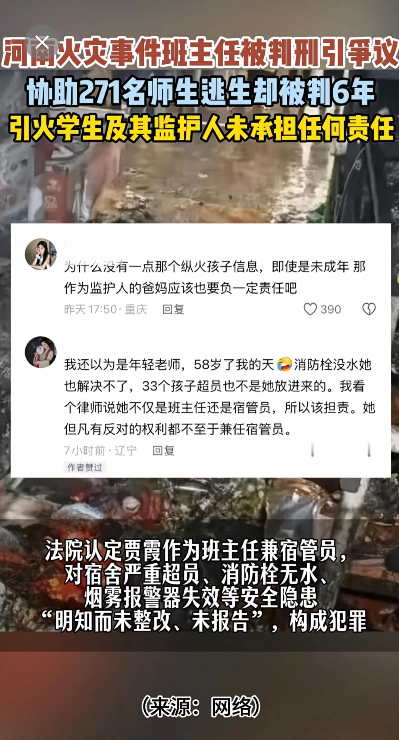 河南火灾事件班主任被判刑引争议,协助271名师生逃生却被判6年,引火学生及其监护