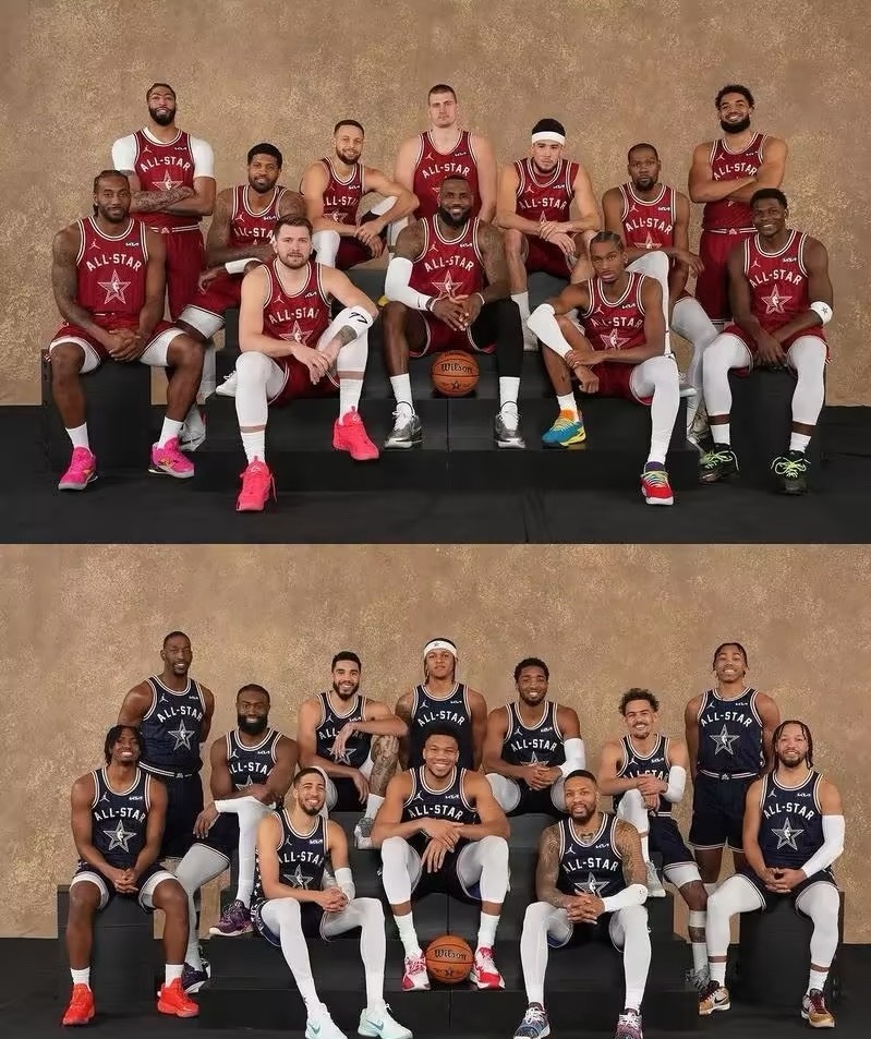 NBA今年的全明星西部阵容竞争太激烈了基本老中青三代大神都在西部老:詹姆斯,杜兰特,库里,伦纳德中:约基奇,亚历山大,东契奇,爱德华兹青:文班亚马,弗拉格,申京,霍姆格伦你东部怎么比呀