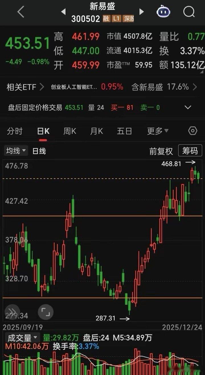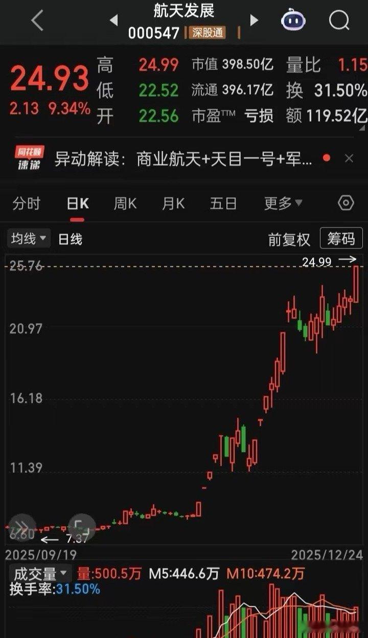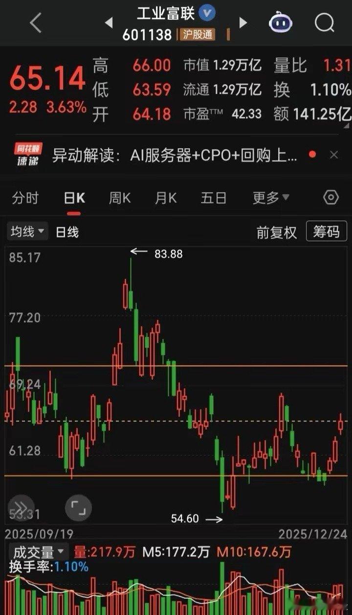 【每日观察2025.12.24】上证日K线六连阳,在总成交额18972亿比上个交易日缩量241亿、上涨4128家下跌1137家、涨停86家跌停6家的情况下,谁在成交额前十中际旭创147.53亿,涨2.16%(再创历史新高)工业富联141.25亿,涨3.63%新易盛 135.12亿,跌0.98%航天发展119.52亿,涨9.34%胜宏科技112.72亿,涨0.42%中国卫星97.93亿,涨停英维克 91.71亿,涨7.06%天孚通信90.57亿,涨0.36%香农芯创87.35亿,涨8.89%阳光电源83.50亿,跌1.26%