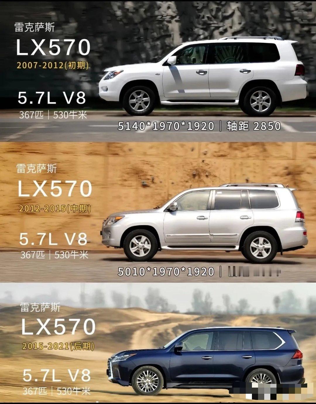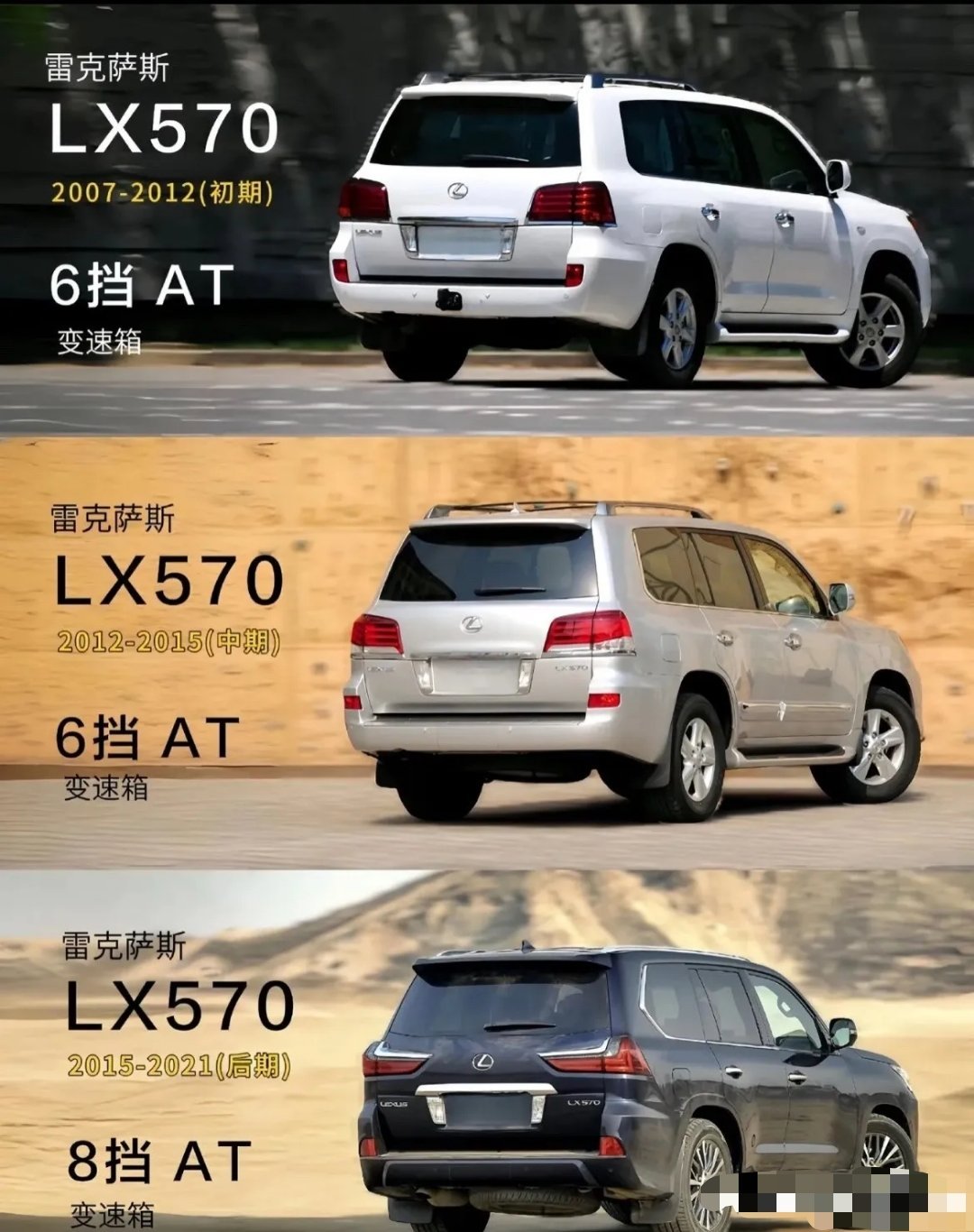 哪一代是你心中最美的雷克萨斯LX570,朋友们?看来看去,我觉得还是第三代最美!无论外观设计、内饰做工,还是发动机和变速箱的搭配,都是最佳组合!尤其8AT变速箱带给用户核心驾驶感受,那种平顺、高效、兼顾舒适与动力响应,是之前两代车型所完全不具备的!在日常通勤时换挡时几乎无感,而在高速巡航时转速低油耗又省,并且动力响应降挡又非常干脆!