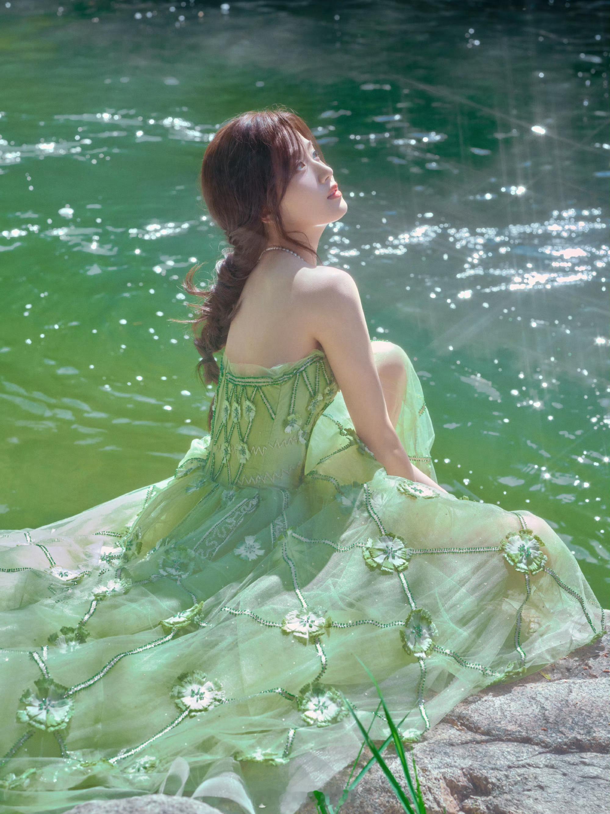 快看这位古装美女!乌发簪翠,黛眉含情,罗裙飘逸似流霞,她站在那,便是诗意古韵与绝