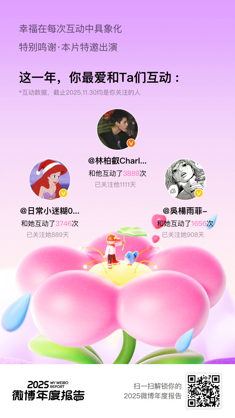 微博年度报告 2025年总是喜欢和你们互动:这大概就是明晃晃的“偏爱”吧!新的一年,这份偏爱依旧为你保留!2025微博年度报告