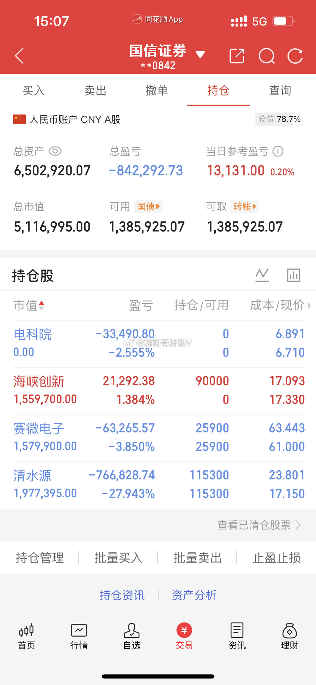 今日操作:买入:海峡创新300300卖出:电科院300215看到的朋友点个赞,扣一波“178”支持我,我会每天坚持发出自己的操作来!哥哥姐姐,点赞富三代,评论美一生!!最后再提醒一句,每个人炒股的风险承受能力、操作节奏都不一样,我的票子未必适合你,请勿盲目跟风,盈亏自负。
