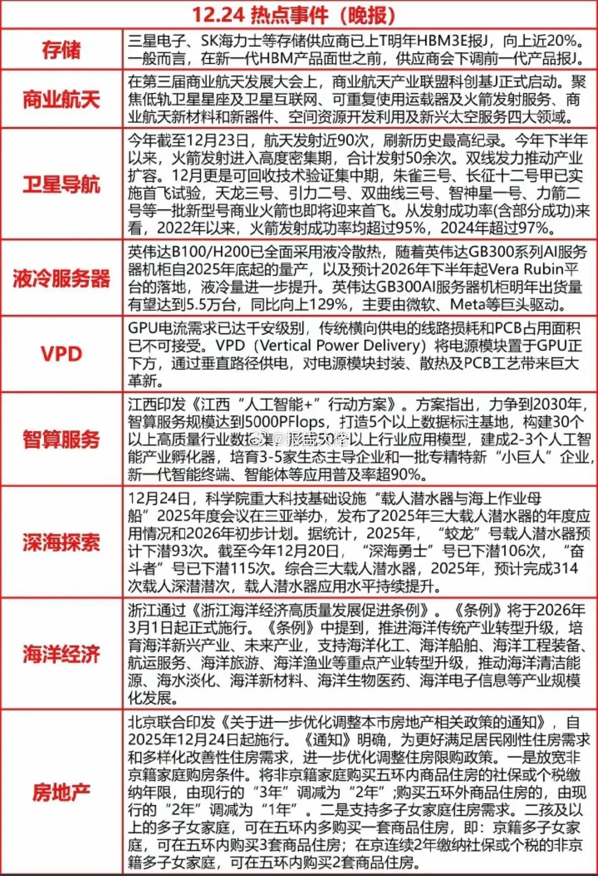 周三晚间 重要财经热点汇总!1.房地产(北京新政策)2.卫星导航3.存储芯片报价4.智算服务5.深海探索+海洋经济6.液冷服务器