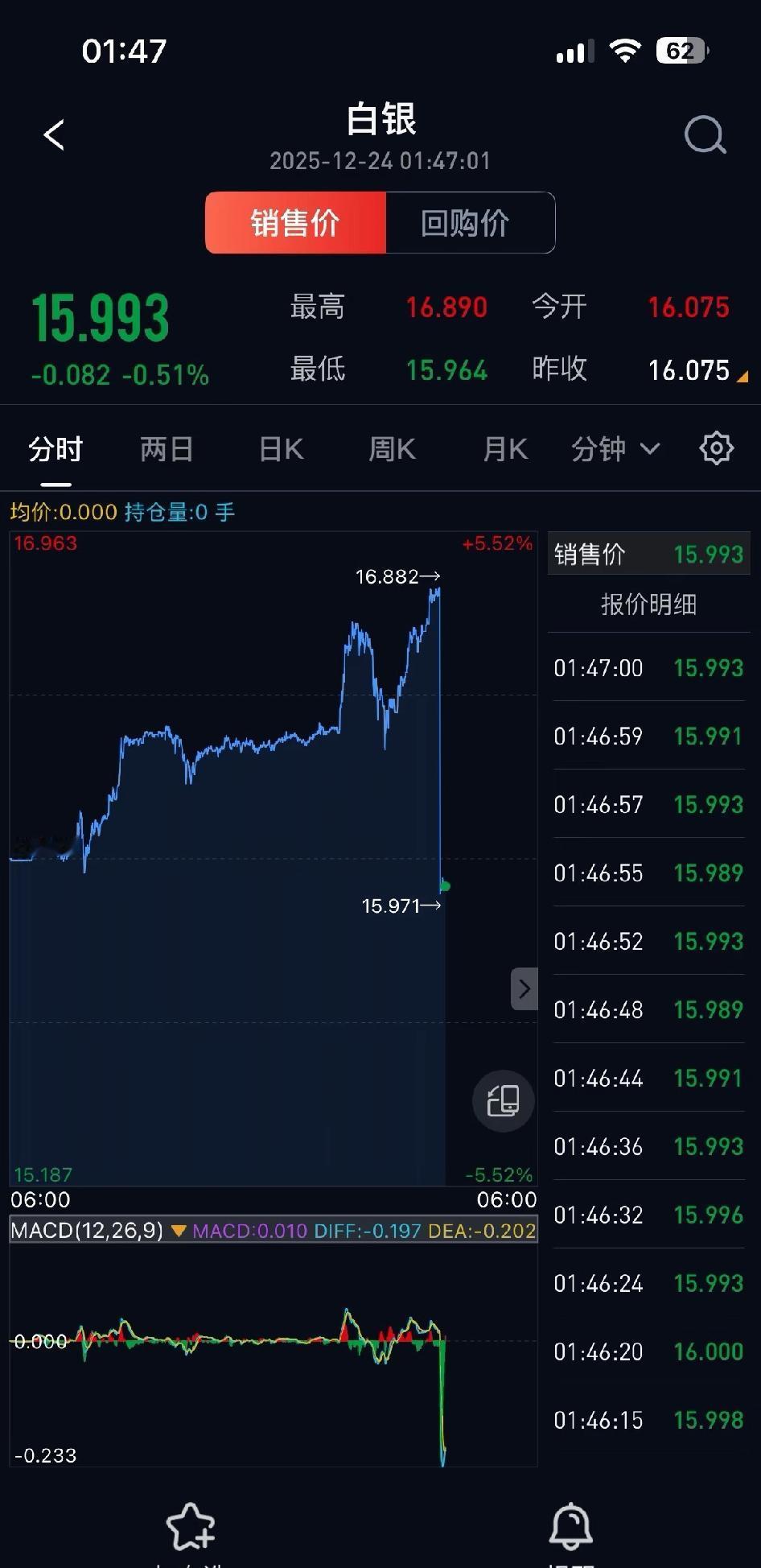 白银发生了啥,2分钟暴跌暴涨,大资本? 我嘞个豆,估计是做空试盘,毕竟白银盘子不算大,资金稍微一动就能掀起浪。加上最近库存紧张、政策调整搅局,市场情绪本就敏感,一点风吹草动都能被放大。