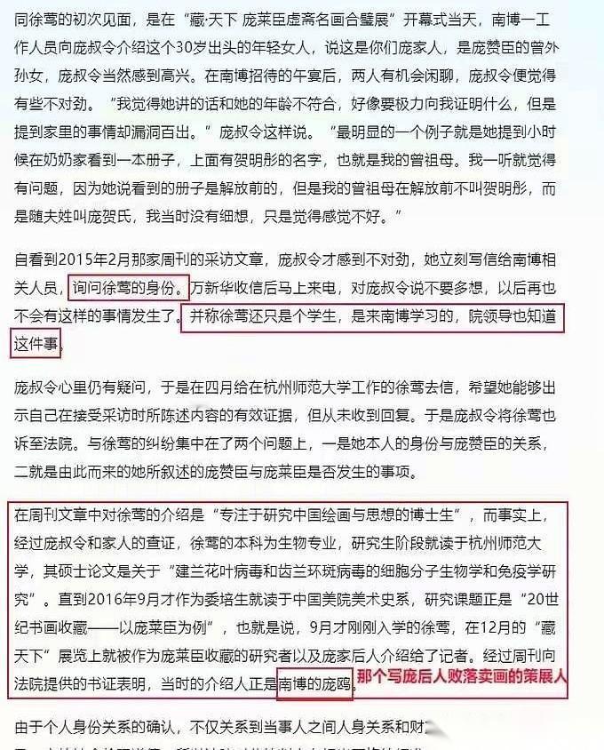 这事儿你说上哪儿说理去? 一个学生物的,摇身一变,进了南京博物馆,成了国宝字画领域的专家。 还给自己安了个名门之后的身份,说是大收藏家庞赞臣的曾外孙女。 结果呢?假的碰上真的了。 人家庞家正儿八经的后人找上门,说你谁啊?我们家可没你这号人。 场面一度非常尴尬。 最好笑的是什么?据说啊,是据说,馆里领导心知肚明,还往下压,不让查。 这水,深着呢。 你以为故事到这就完了? 不,高潮来了。 这位靠着“人设”一路开挂的徐女士,现在是杭州师范大学的老师。 为人师表。 我就是特别好奇,她给学生们上第一堂课的时候,会不会讲讲自己的“奋斗史”。 是讲专业知识重要? 还是讲“如何在这个社会上,给自己快速打造一个无法被证伪的身份”更重要? 有时候你不得不服,有的人,真就把人生玩成了专业。 而我们这些老实人,还在吭哧吭哧地研究专业本身。