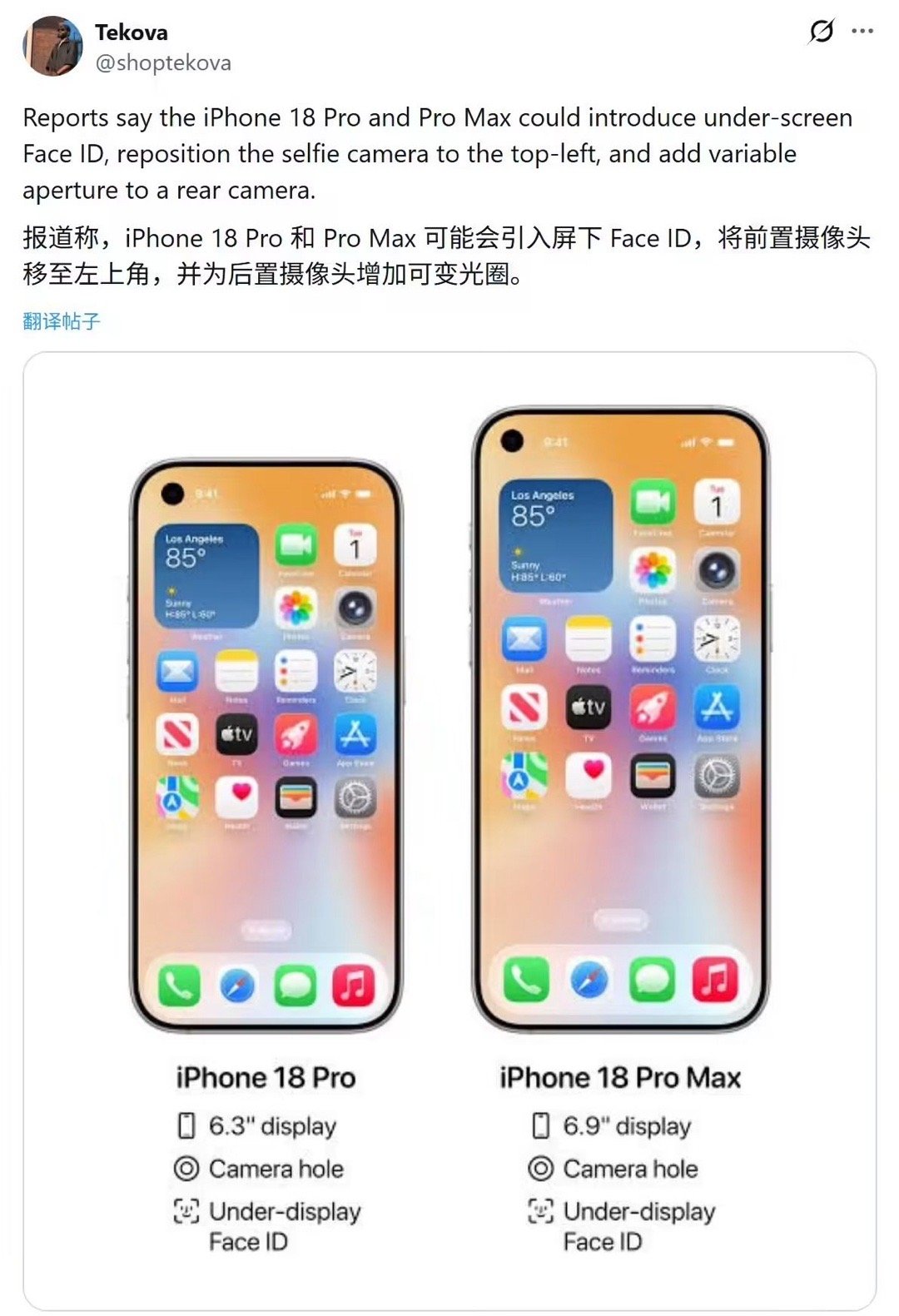 iPhone18Pro最新前瞻我估摸着,苹果会把iPhone18 Pro做成挖孔屏,接下来几代不动背面,就往单打孔前置摄像头做改变,同意么