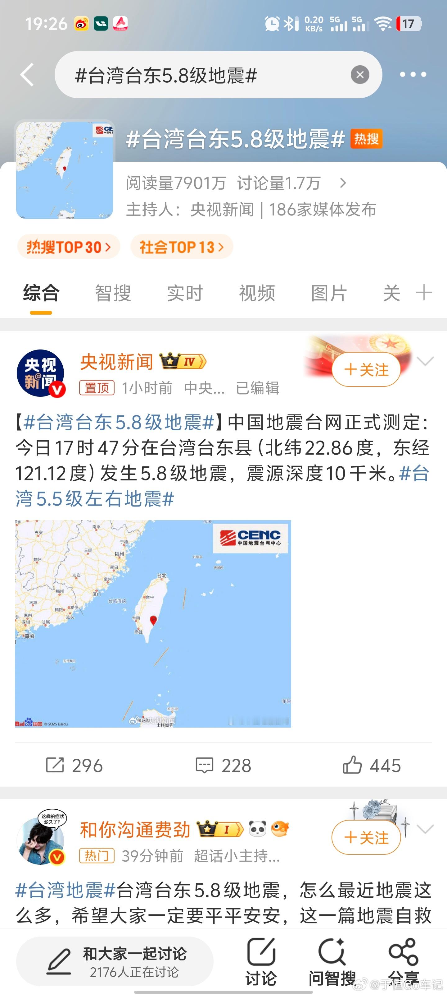 台湾台东5.8级地震这不经常地震吗咋还上热搜了?因为5.8级大了点?