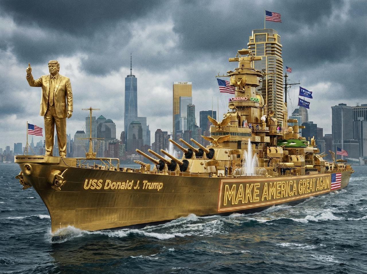 网友纷纷帮特朗普设计“黄金战舰”,自从特朗普宣布打造“特朗普级”新型战列舰,并且要组成“黄金舰队”以来,真是忙坏了国内外的网友。 特朗普计划共建造20~25艘“特朗普级”战列舰,打造一支“黄金舰队”。特朗普喜欢金光闪闪的东西早已不是什么秘密,此前他就把白宫宴会大厅和自己的办公室改造的金碧辉煌,访问韩国时李在民还曾投其所好为特朗普打造了一顶金色的皇冠。 这回中外网友们也是发挥想象力,帮助特朗普实现梦想,不知道各位条友觉得这些设计怎么样?[笑哭]