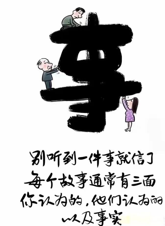 听到的“事儿”,很可能只是别人的观点和感受,不一定是事情的真相。我们很容易跟着别人的说法走,但别忘了,每件事都有你的看法、我的理解,还有最应该重视的真相。就像盲人摸象的故事一样,咱们得保持冷静理智,别急着下结论,这样才能更接近事实真相。