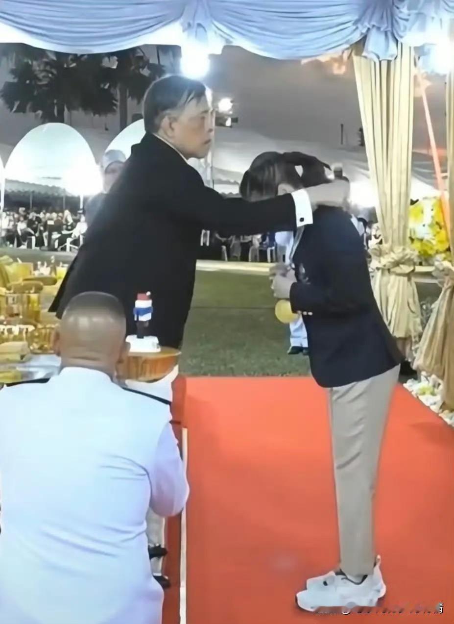 12月18日,苏提达王后斩获帆船总决赛冠军,70多岁的泰王亲临现场,亲手为她颁奖、佩戴金牌,尽显帝王难得的柔情。 泰王为王后戴金牌时动作轻柔至极,细心为她捋顺发丝,又将奖牌仔细摆正,全程一丝不苟的模样,足见对这份荣誉与苏提达的极致重视。 苏提达王后笑意温婉,望向泰王的眼眸盛满爱意,这对望夫眼,道尽了老夫妻之间的和谐与情深。 苏提达从不是依附身份的王后,更是实力出众的帆船运动员,凭一身真本事征服赛场,也让身居高位的泰王对她刮目相看。 真正优秀的女人,终会靠自身光芒赢得偏爱与尊重。