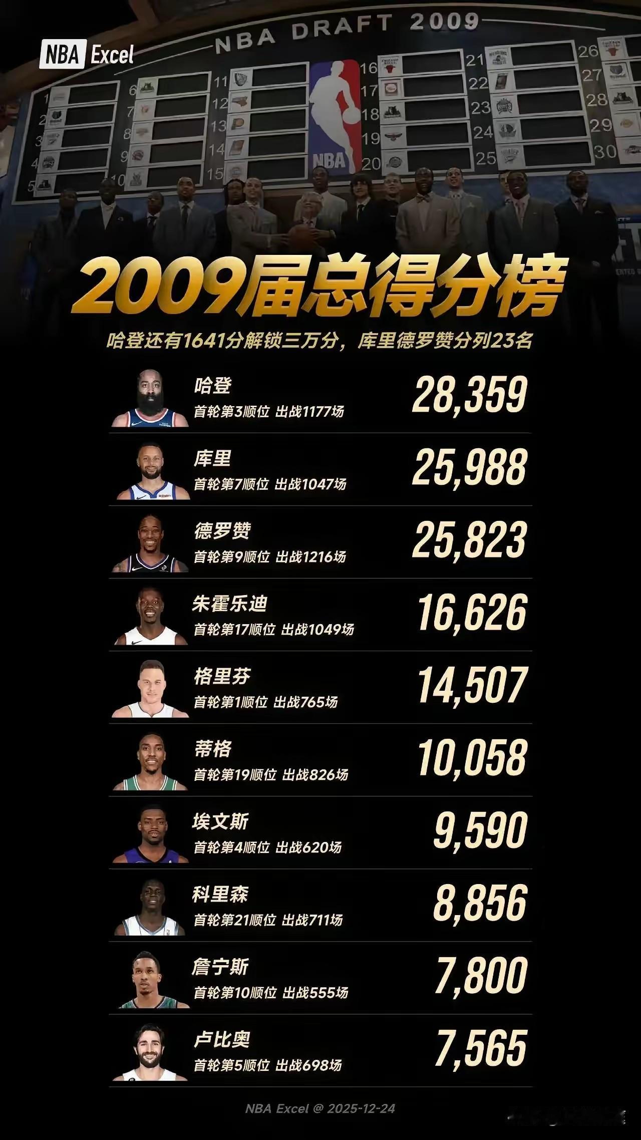 刚才看到网友分享2009届球员得分数据,才发现德罗赞居然跟哈登和库里是同一届的,